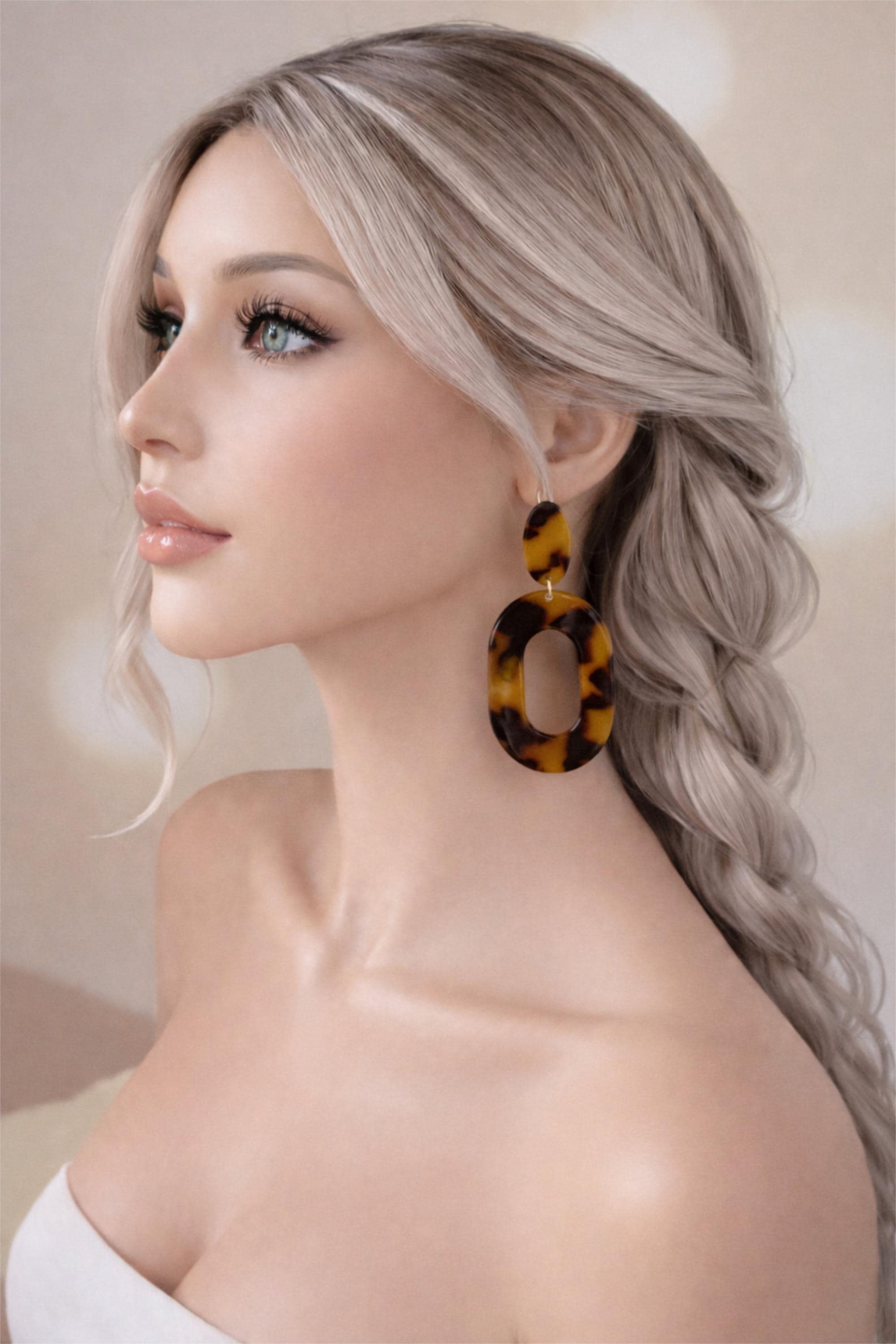 Featuring a glossy marbled brown and black finish, these oversized oval drop earrings are the perfect blend of classic and contemporary. The rich tortoiseshell pattern makes them easy to style with everything from everyday neutrals to evening glam.
