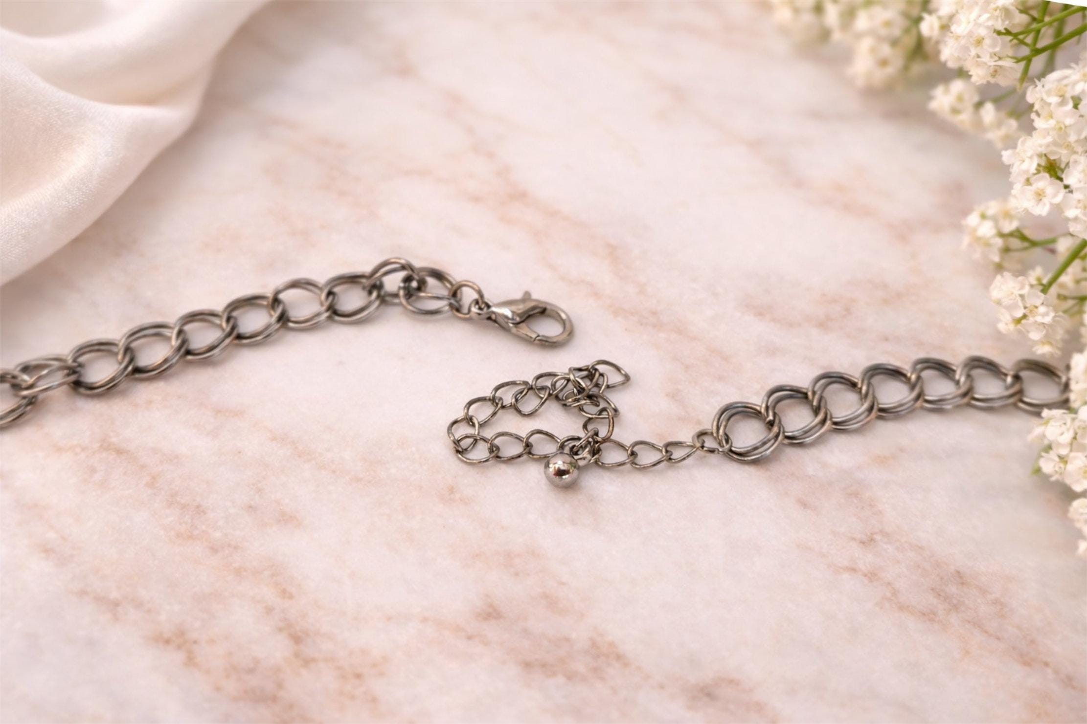 A lovely piece for everyday wear or special occasions, and perfect for anyone who loves floral jewellery with a darker metallic tone.