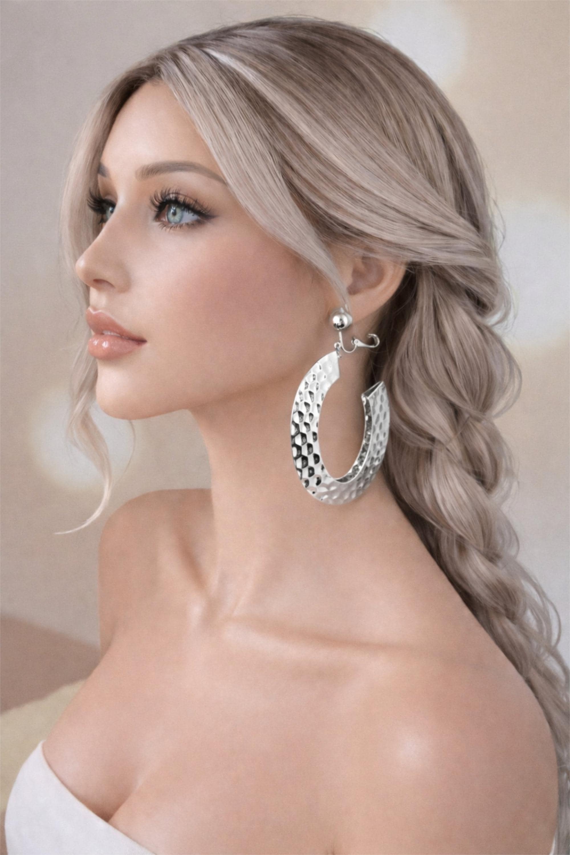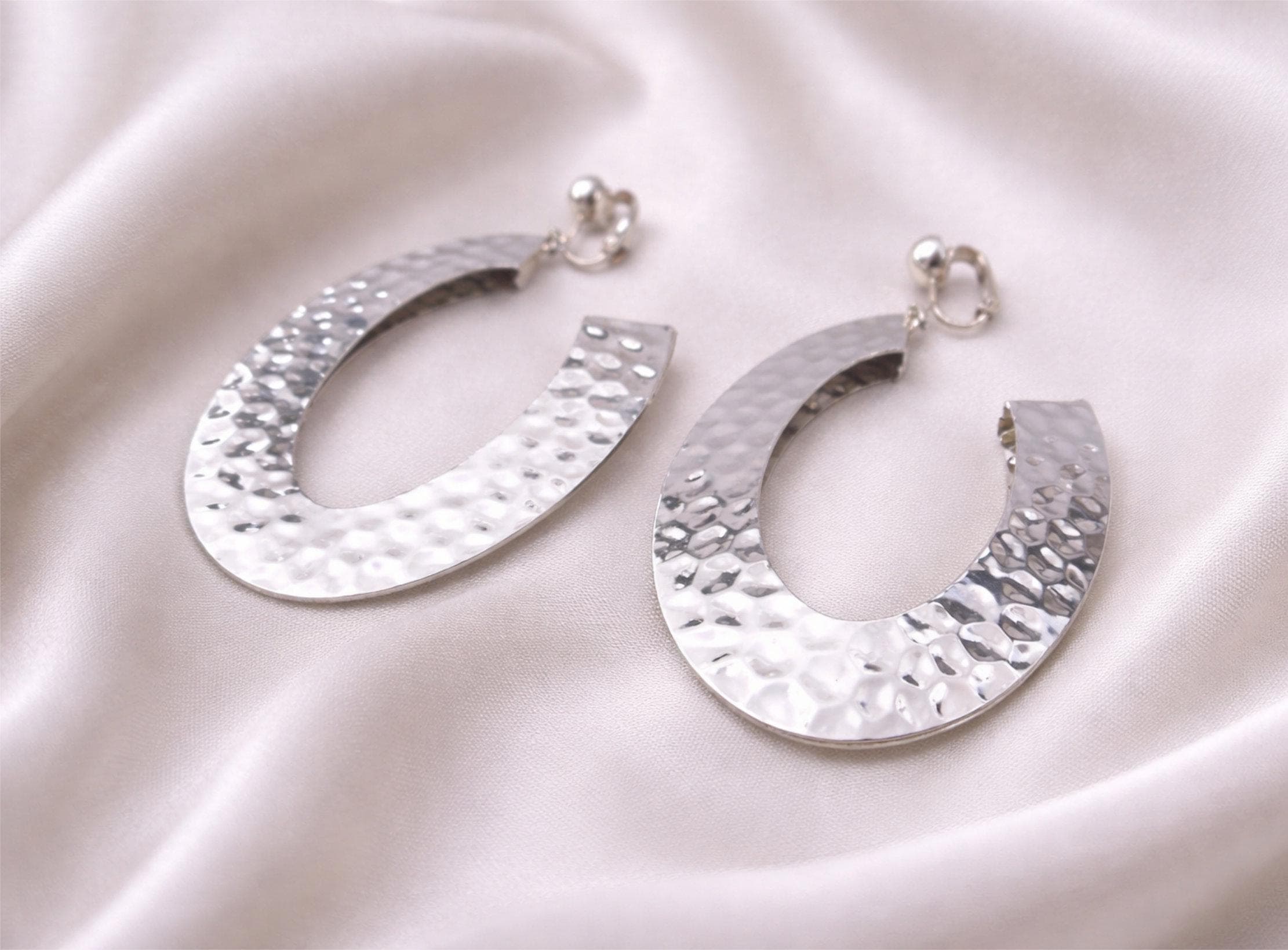Add effortless shine to your look with these silver tone hammered half hoop earrings, designed to make a bold yet elegant statement.