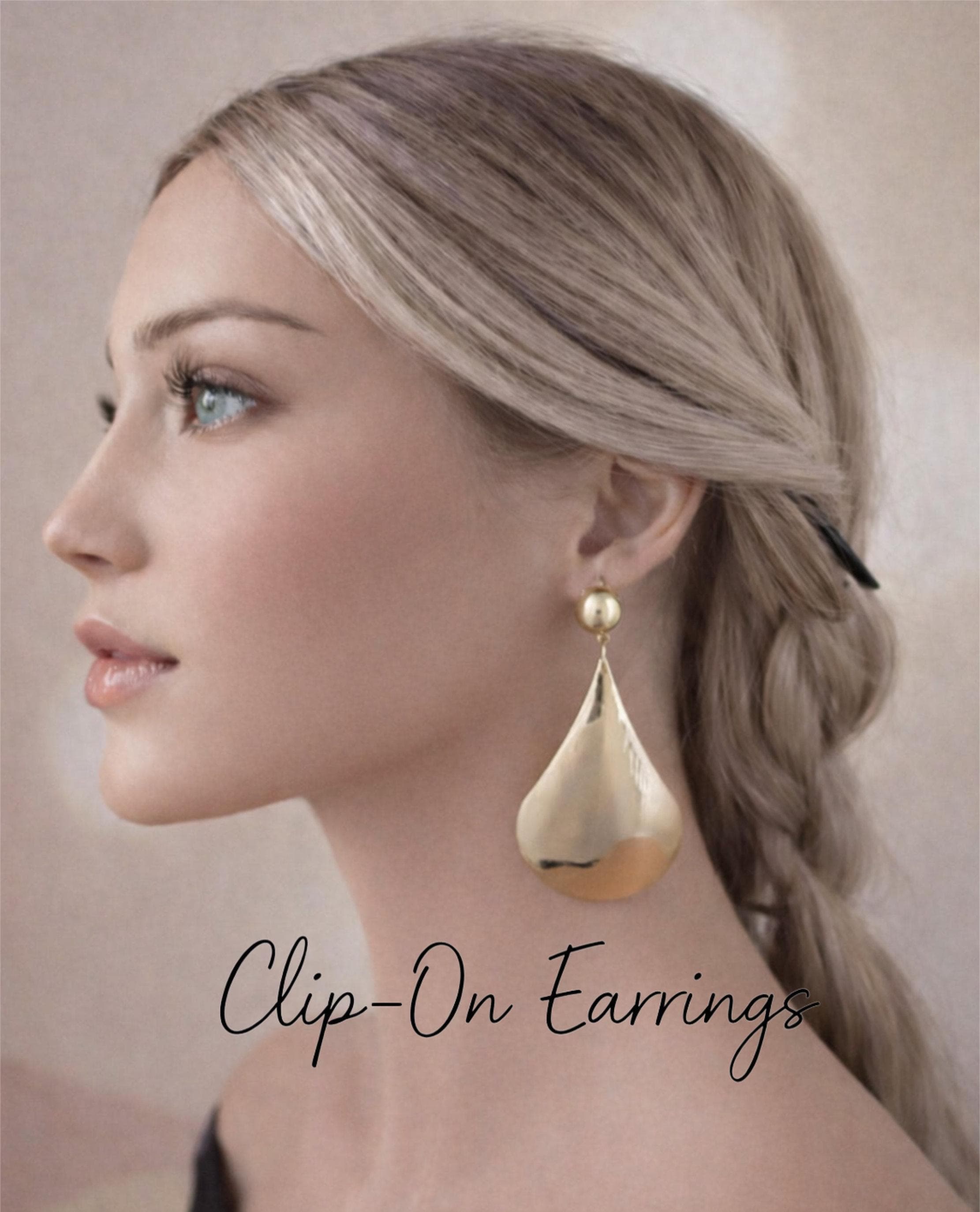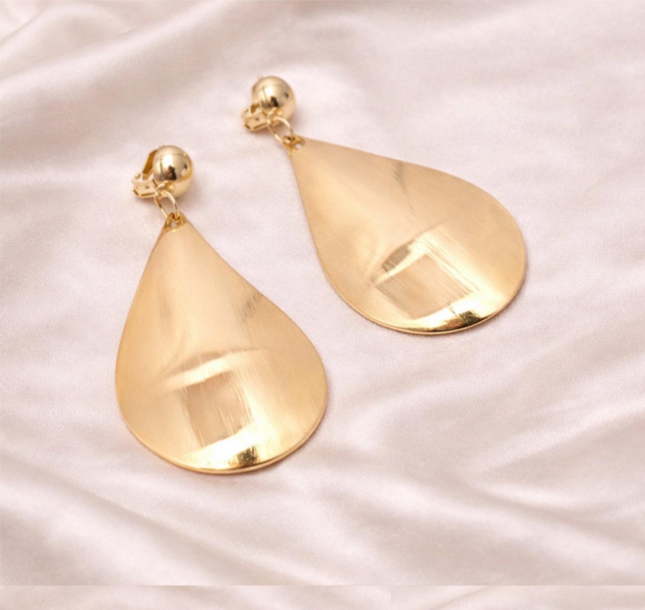 Elegant and eye-catching, these gold tone teardrop clip on earrings are designed to make a statement while remaining comfortable to wear.