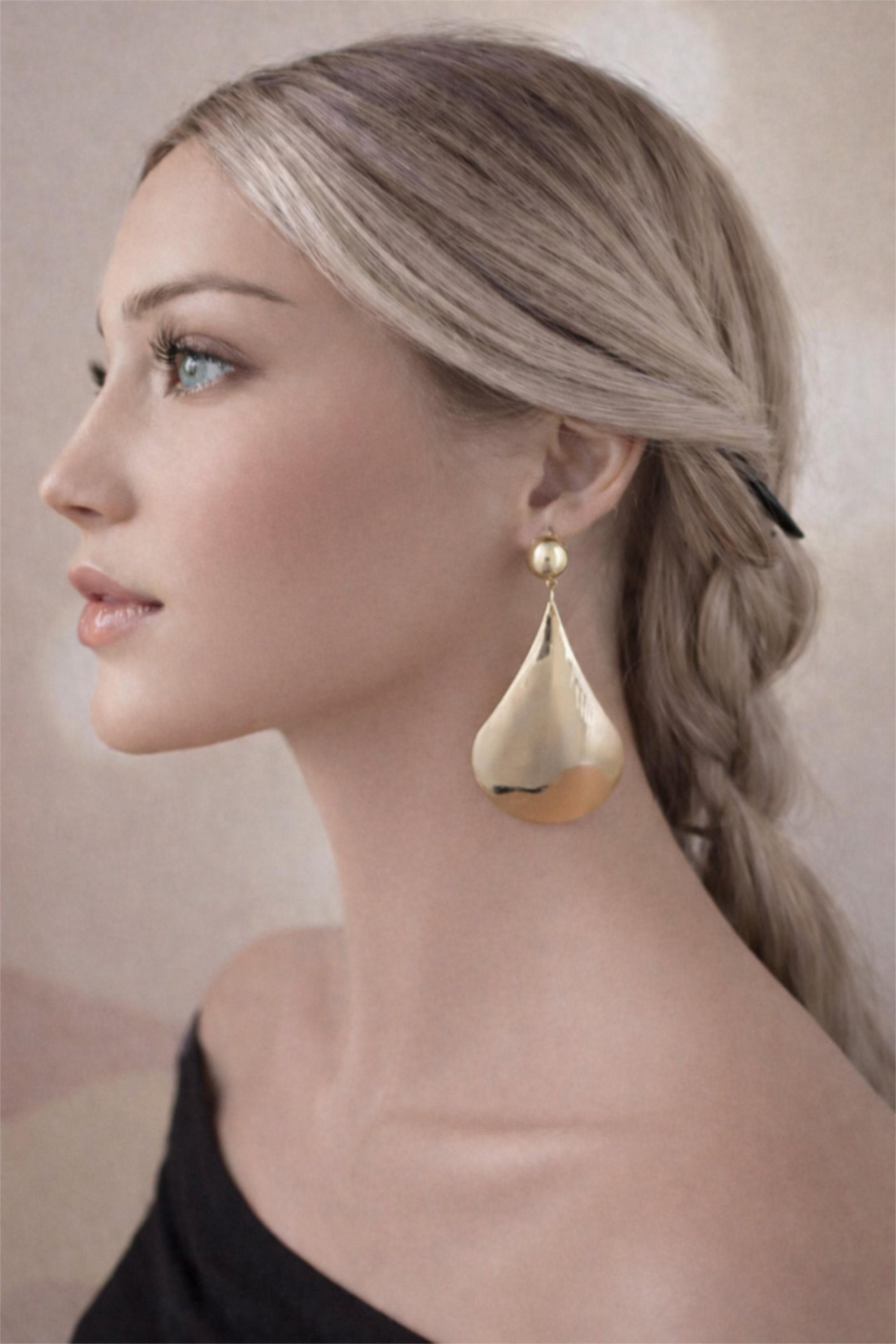 Featuring a light etch pattern finish with a soft reflective sheen, the oversized drop shape creates a bold yet timeless look that works beautifully for both everyday styling and special occasions.