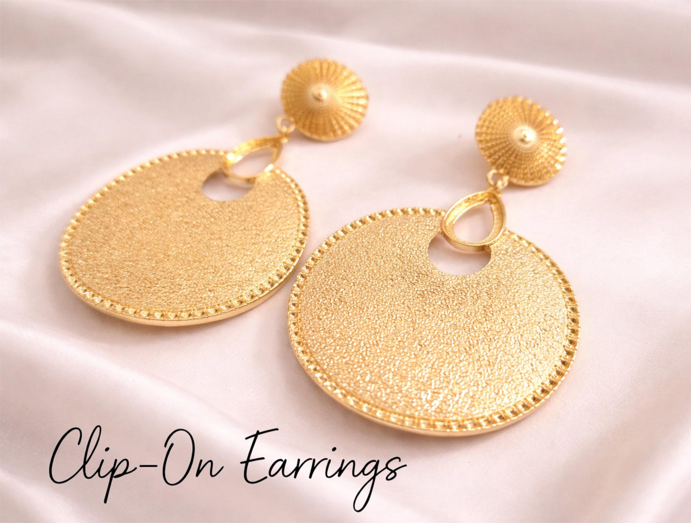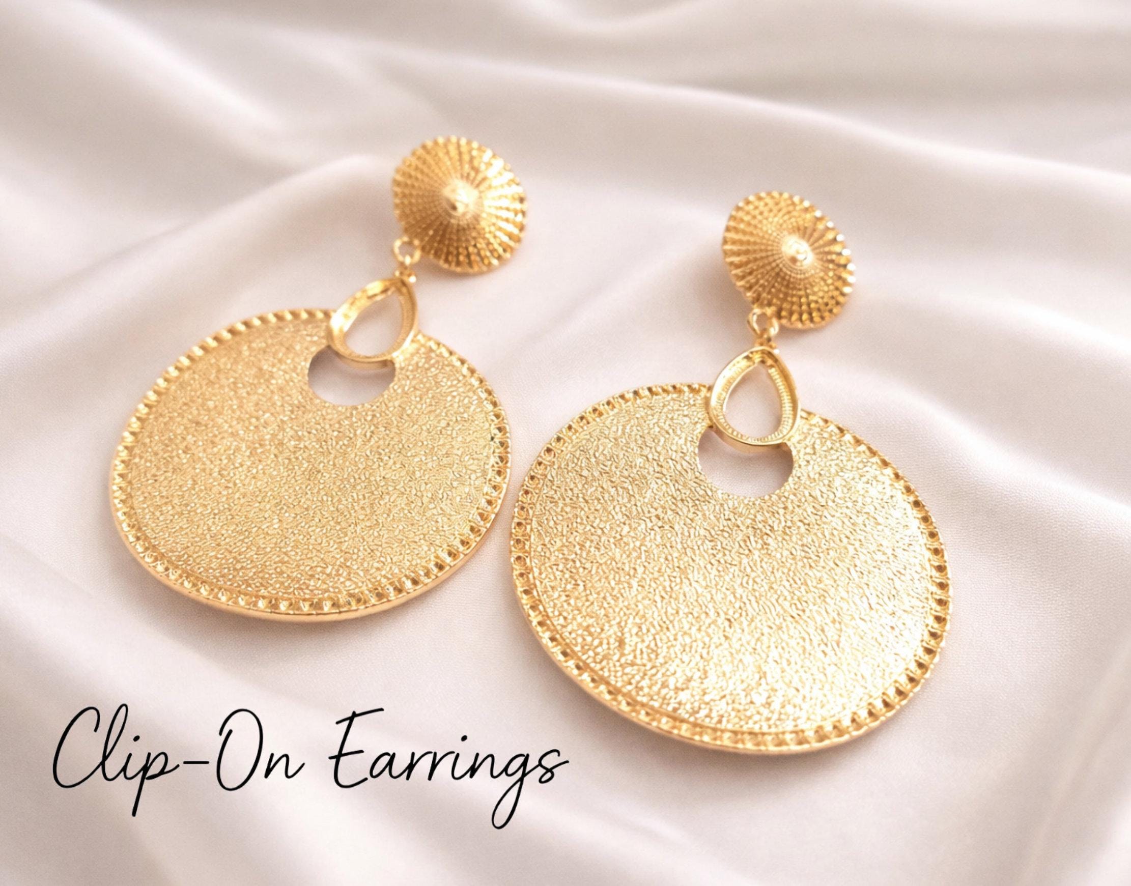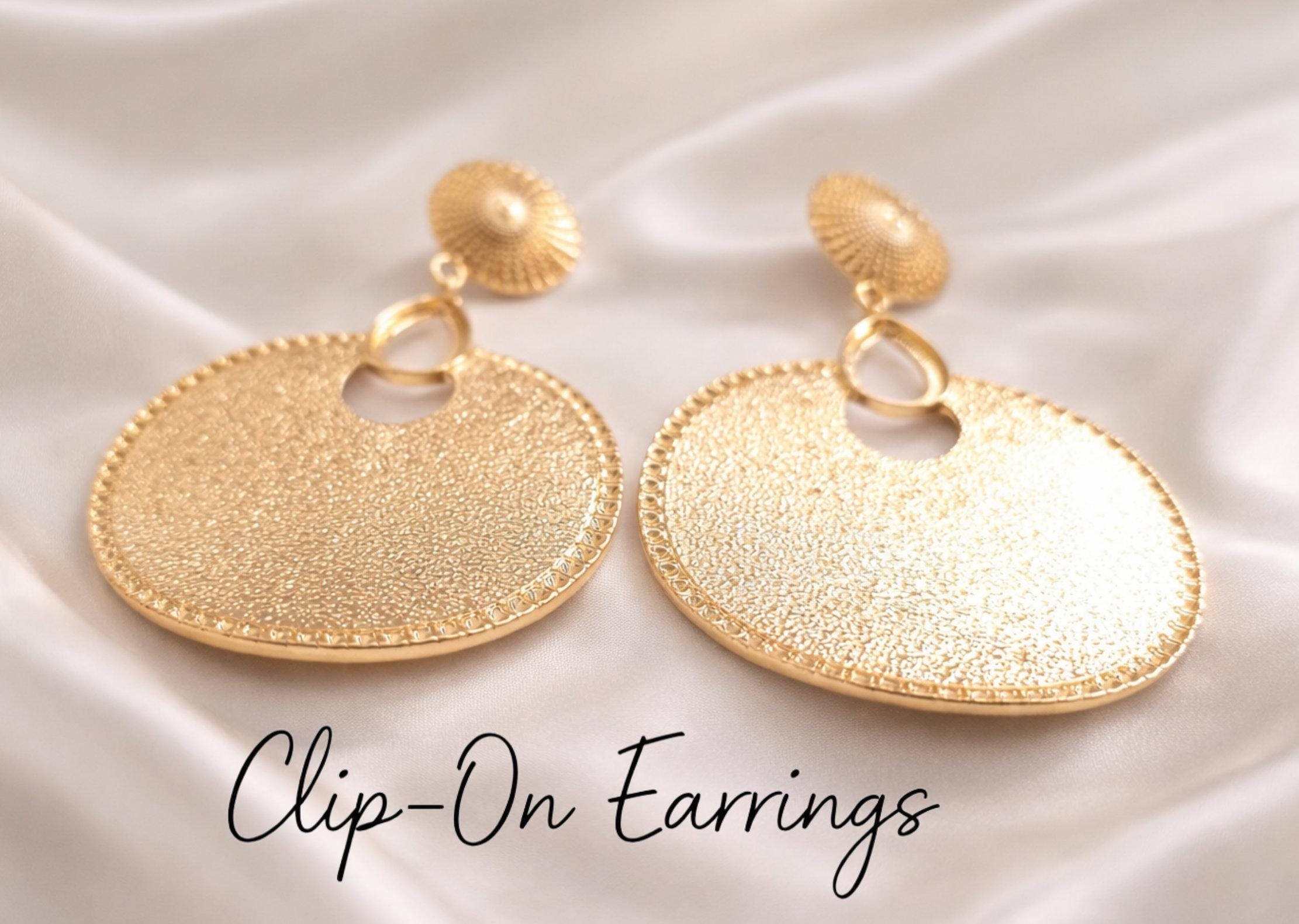 Make a bold statement with these oversized gold tone clip-on earrings, designed with a beautifully textured disc and detailed edging for a luxe, eye-catching finish. Perfect for adding instant glamour to any outfit—whether it’s everyday styling or special occasions.