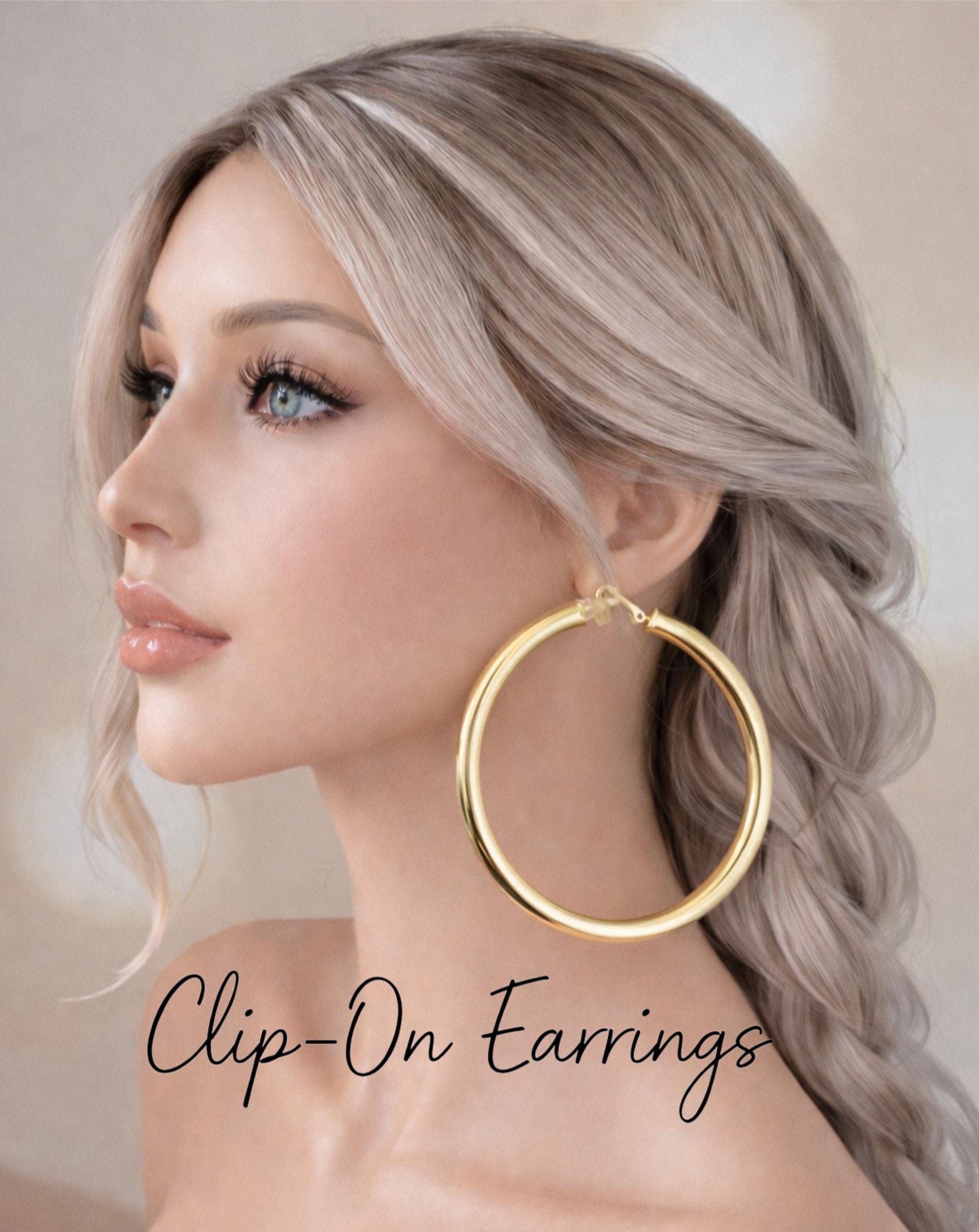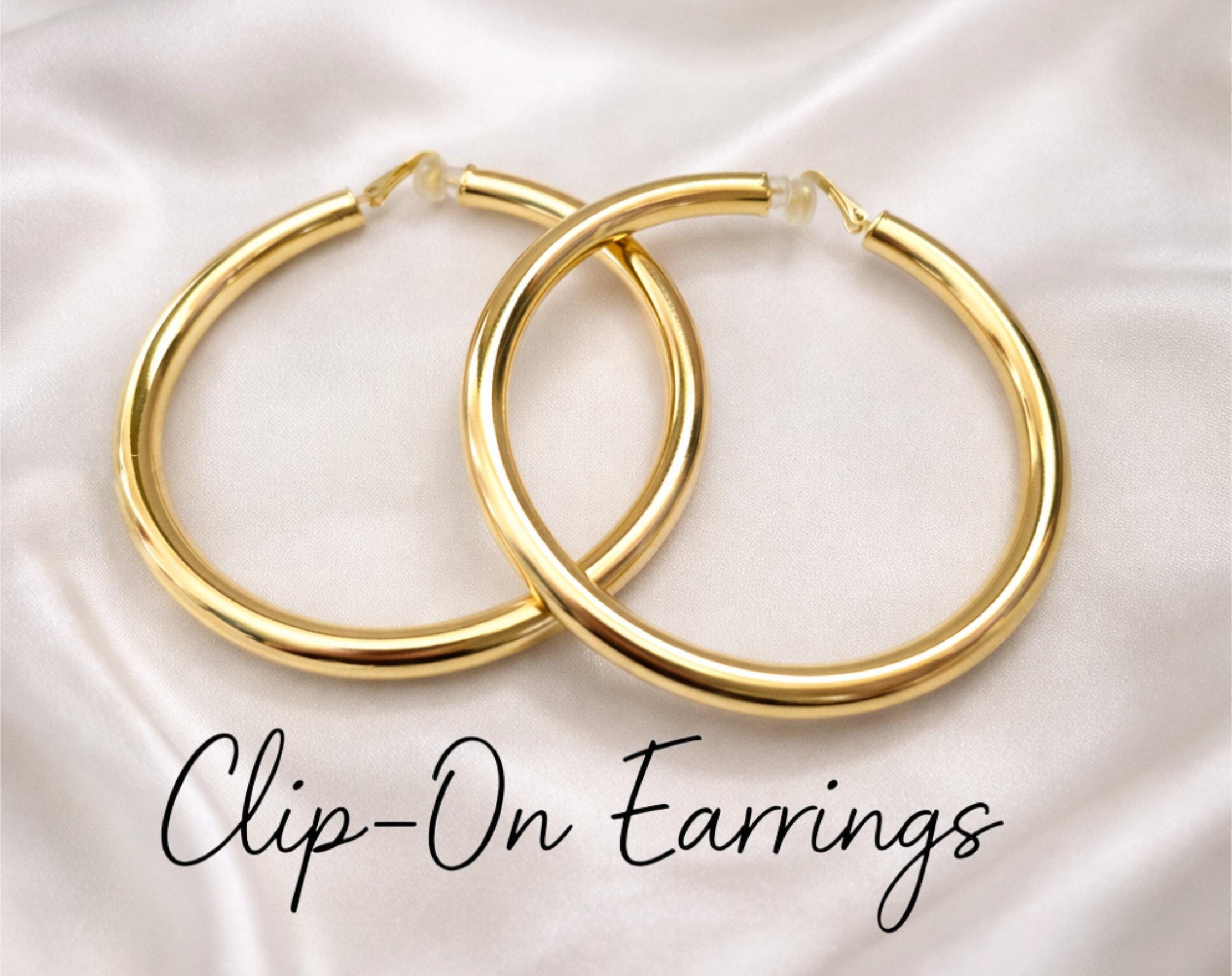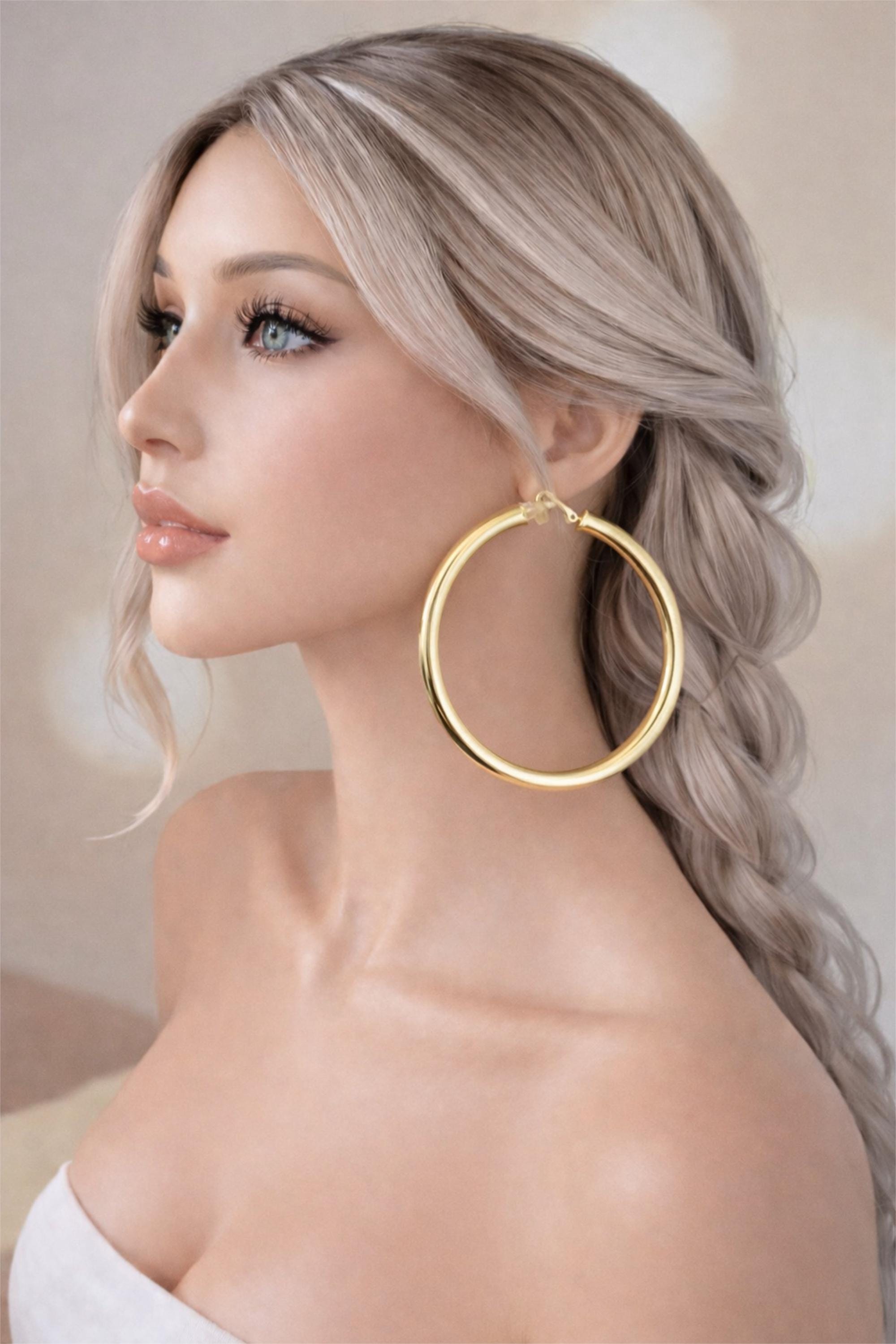 Make a statement with these bold oversized clip-on hoop earrings. Designed for comfort and style, they give you the classic hoop look without the need for piercings.