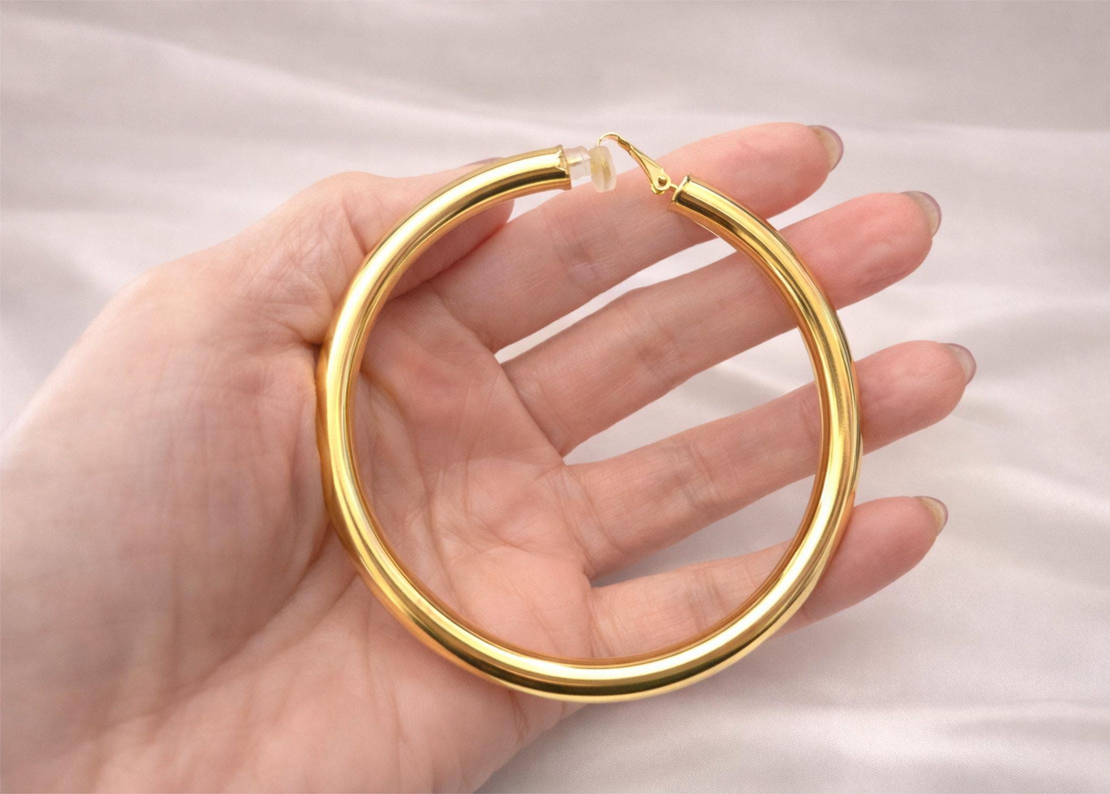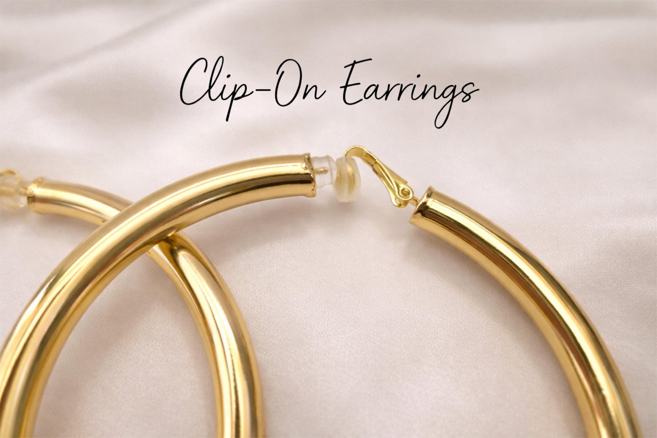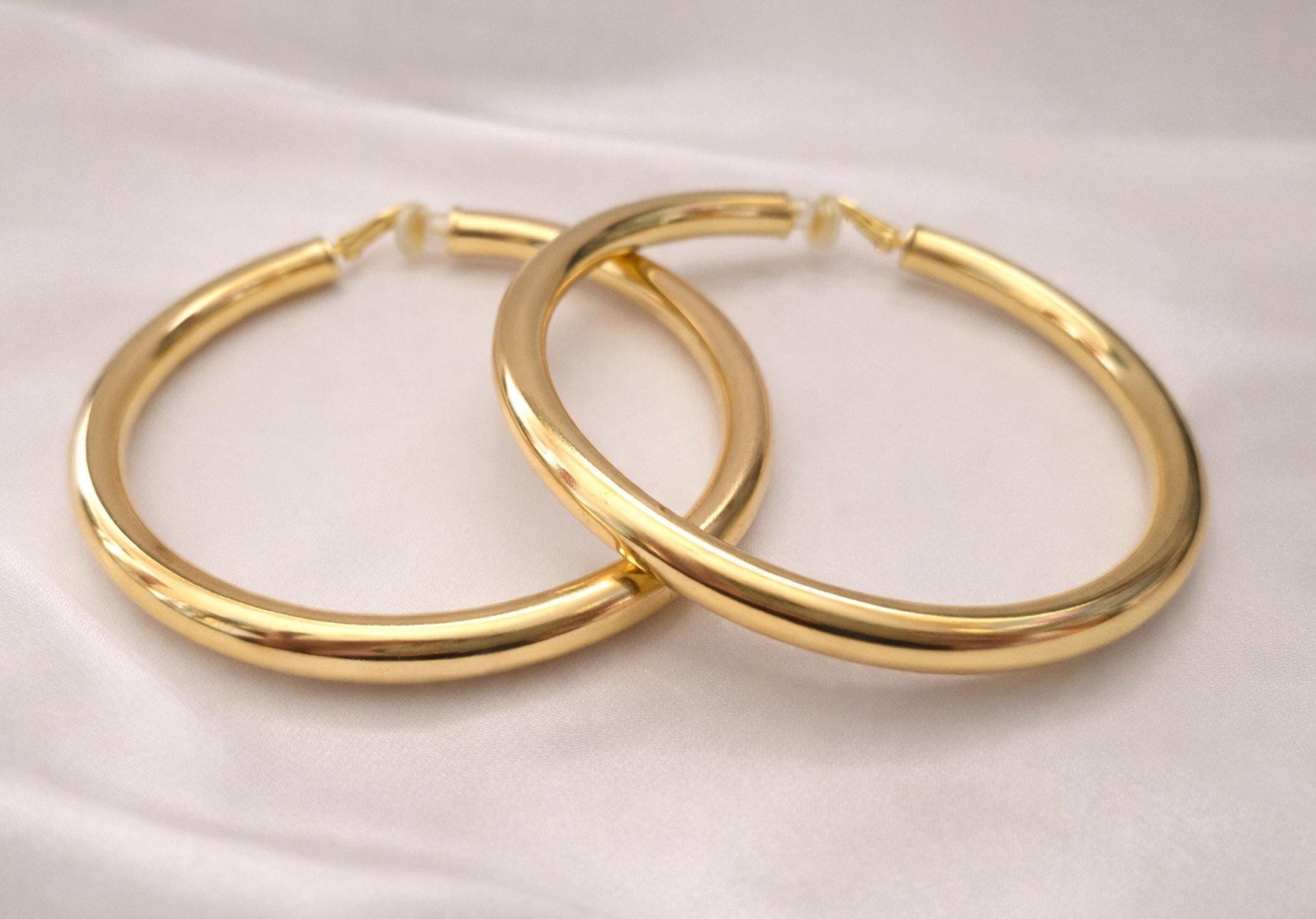 Make a statement with these bold oversized clip-on hoop earrings. Designed for comfort and style, they give you the classic hoop look without the need for piercings.