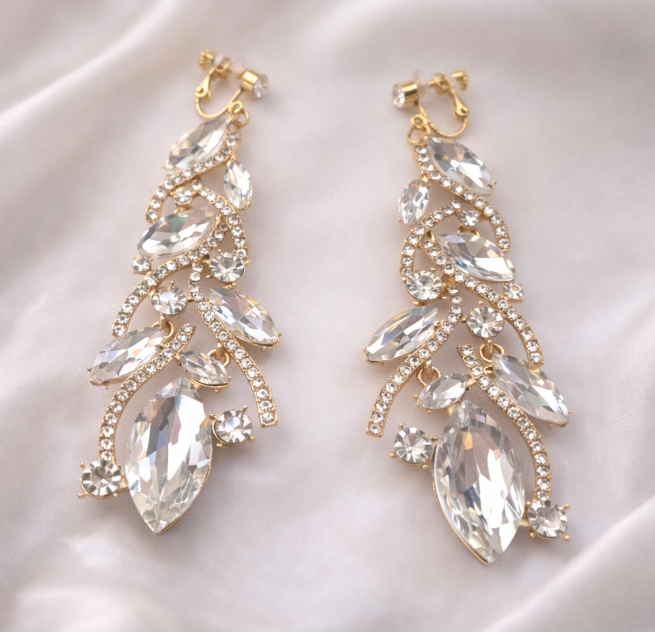 Perfect for weddings, special occasions, or evening wear, these statement earrings offer a luxurious look without the need for pierced ears, thanks to their secure screw design clip-on fastening.