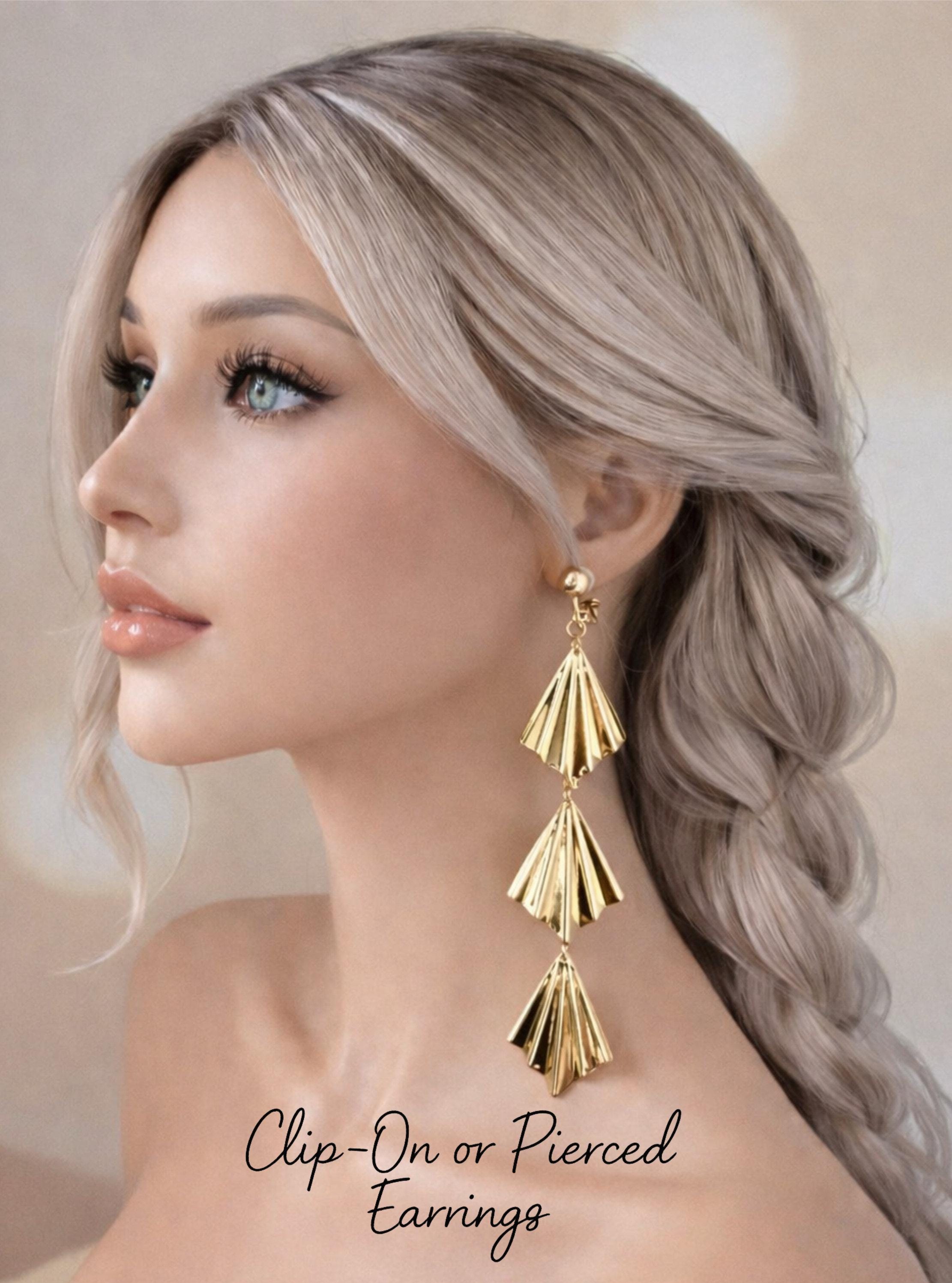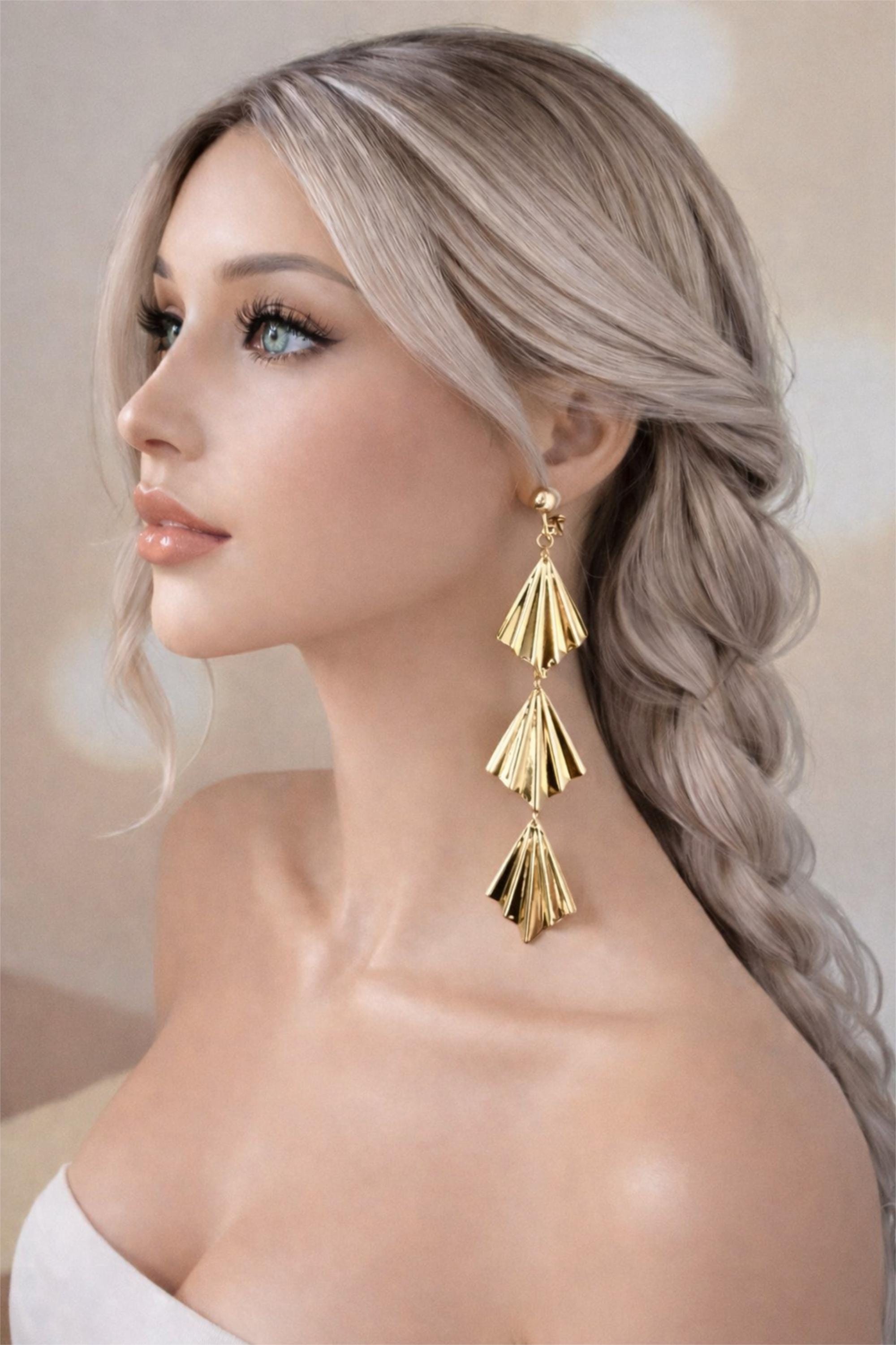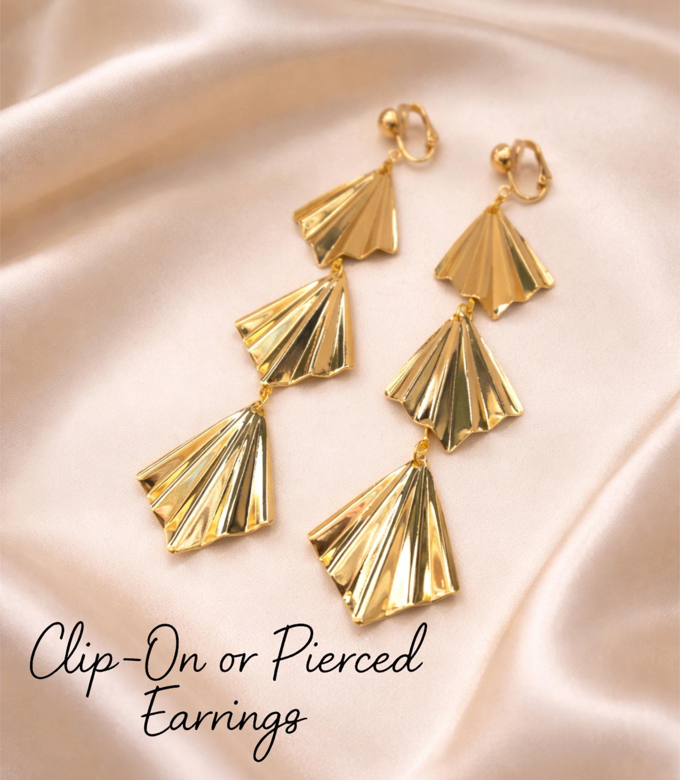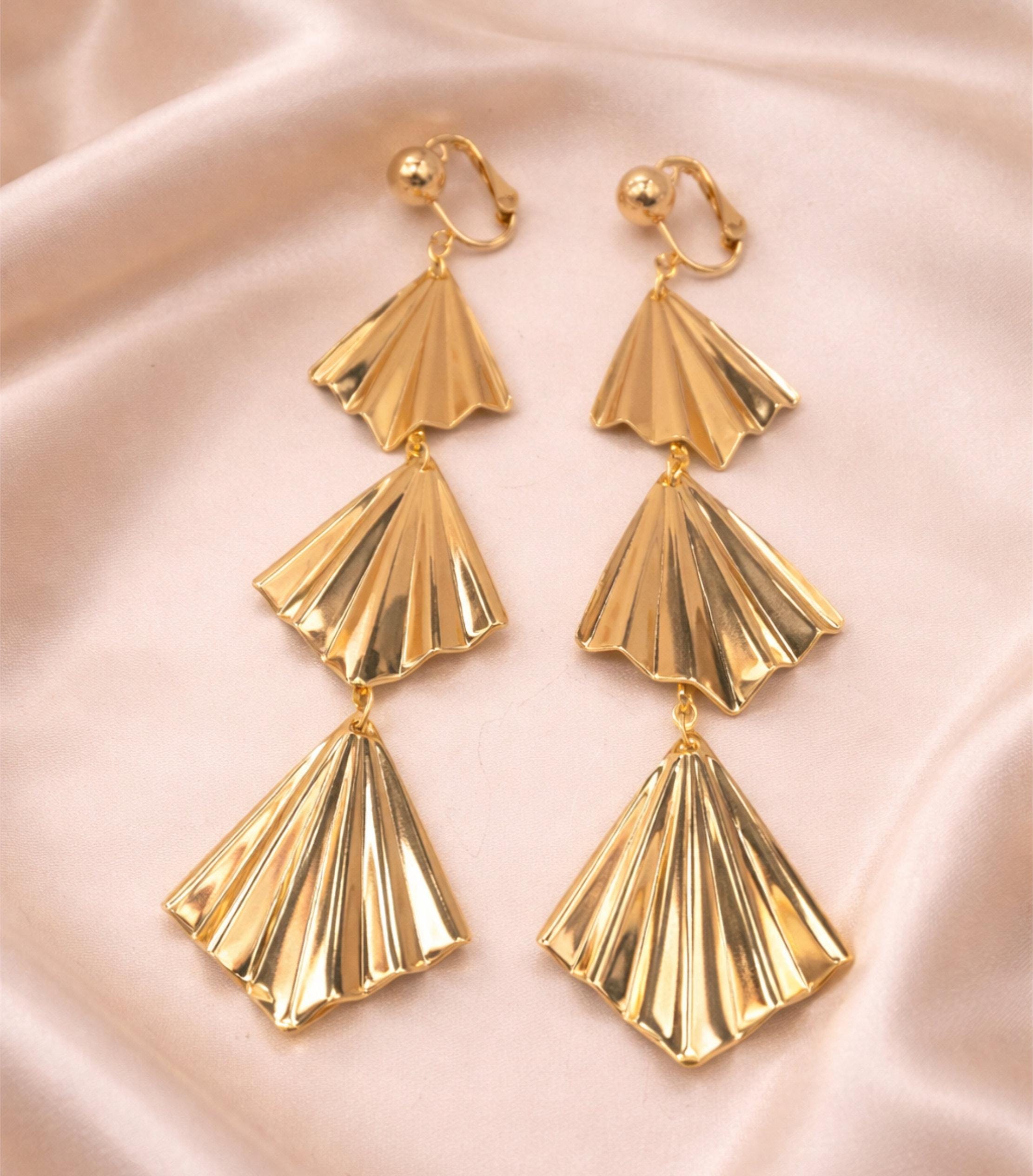 Add a bold yet elegant touch to your look with these stunning fan-shaped drop earrings.