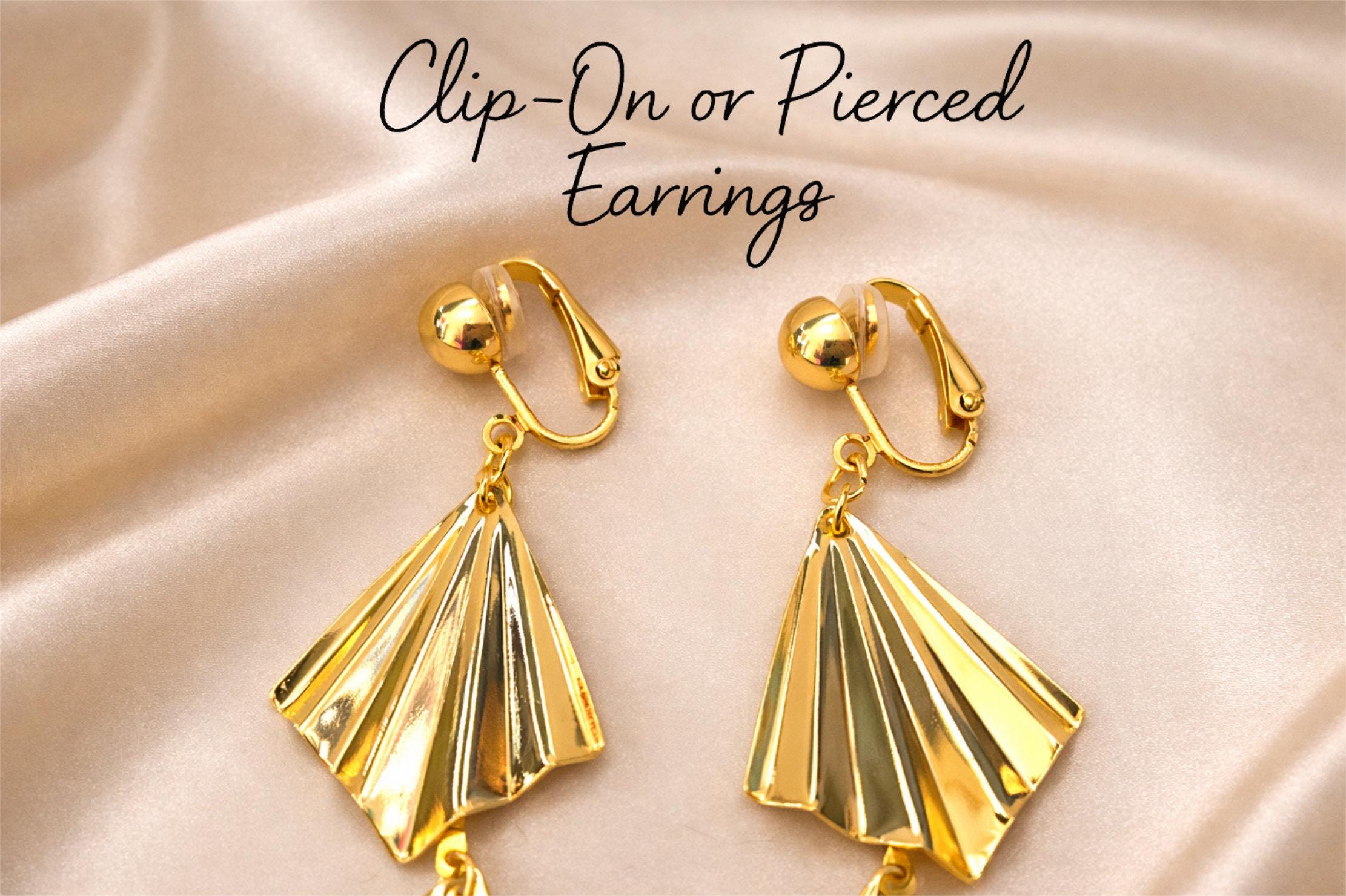 • Each pair is individually handcrafted using carefully selected 18K gold plated brass components, and finished with your choice of 18K gold plated clip-on fittings or pierced fish hook wires.