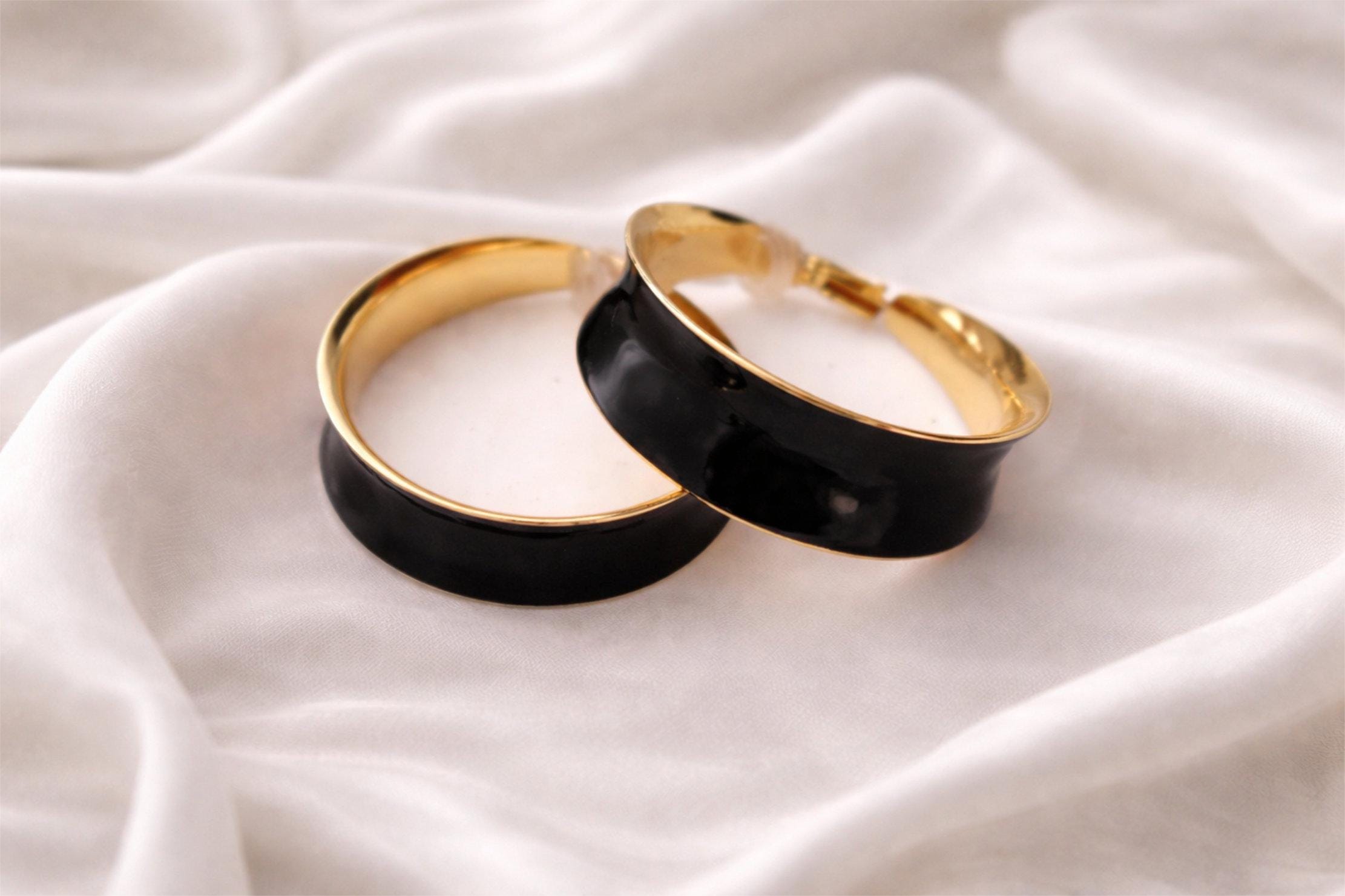 Add a bold pop of colour with these curved tube black enamel & gold tone hoop earrings,