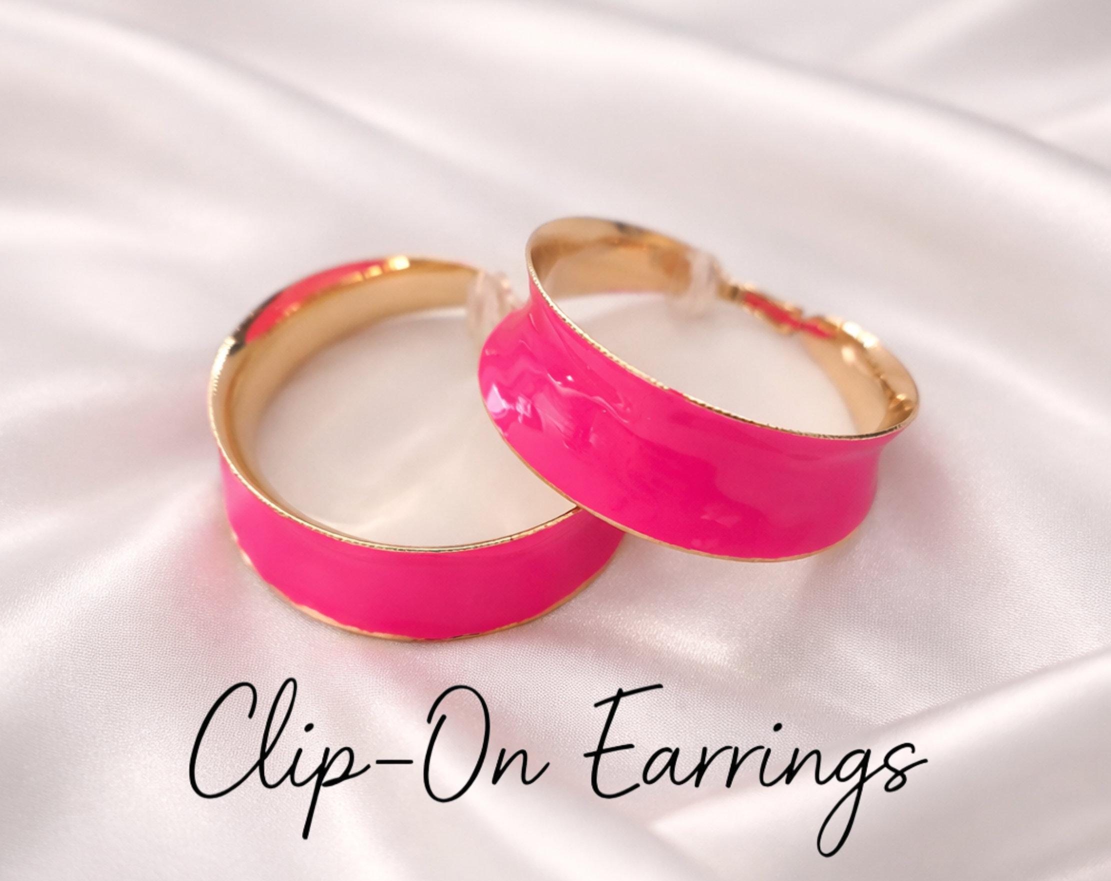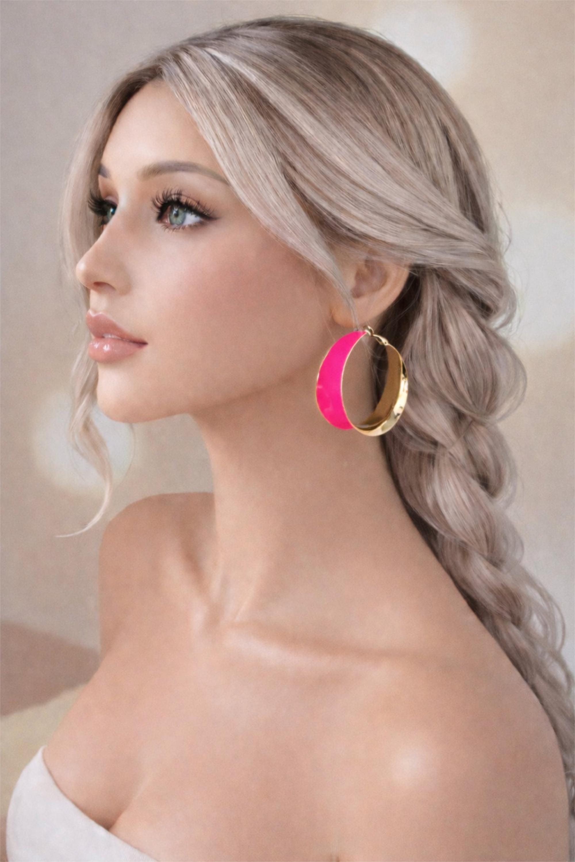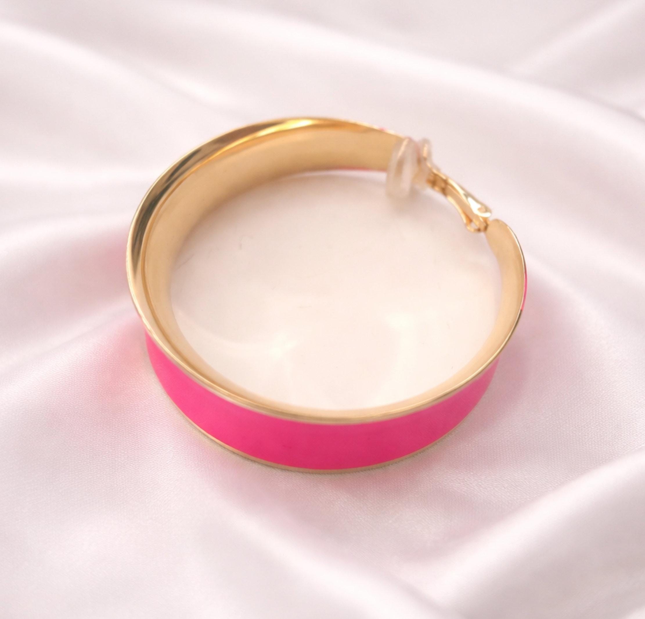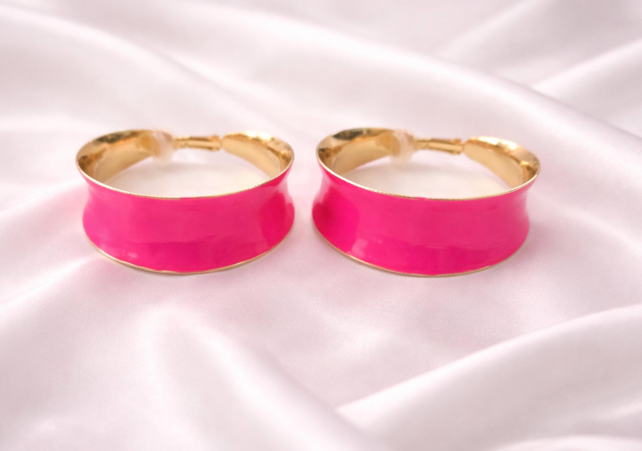 Add a bold pop of colour with these curved tube bright pink enamel & gold tone hoop earrings,