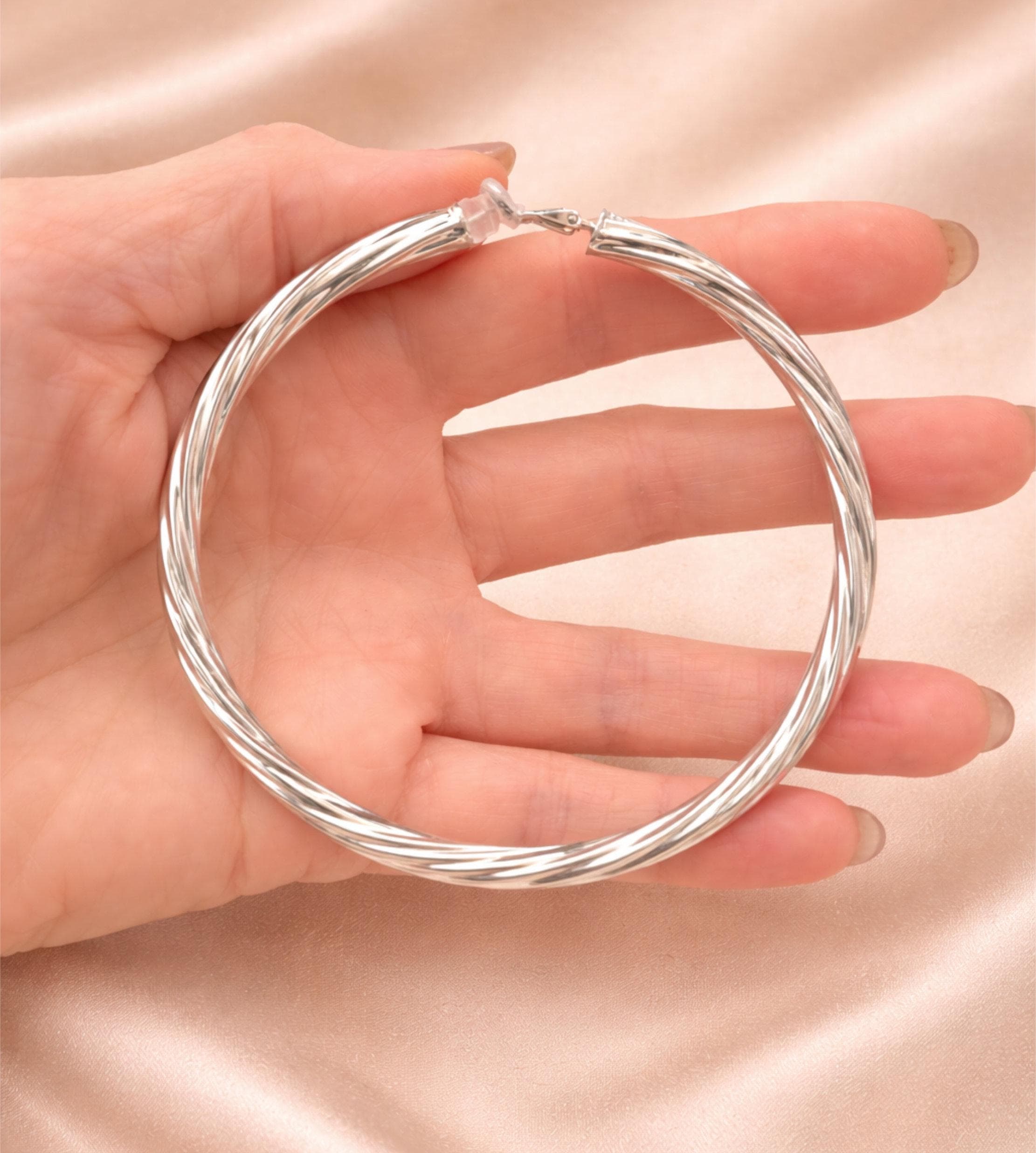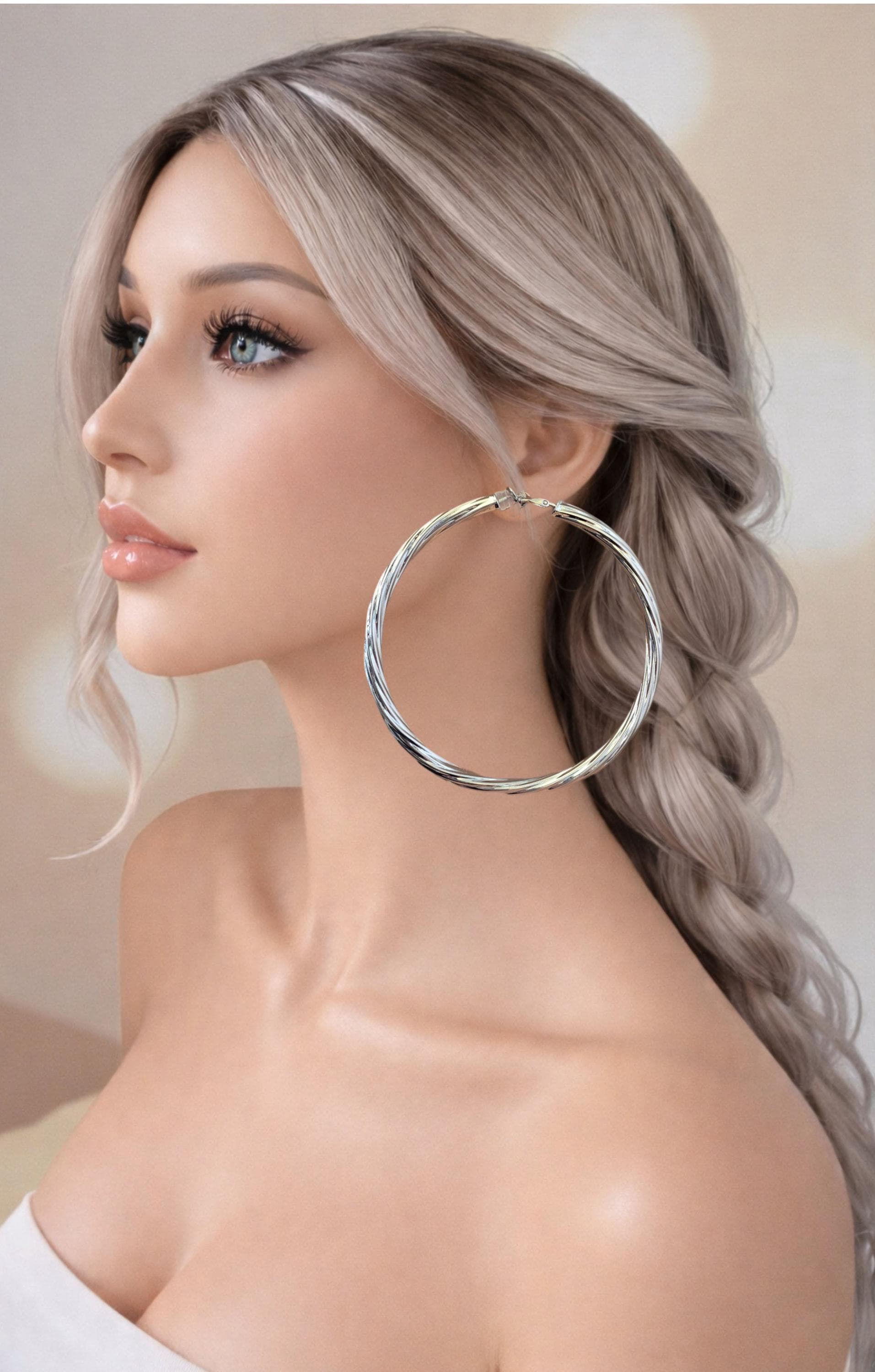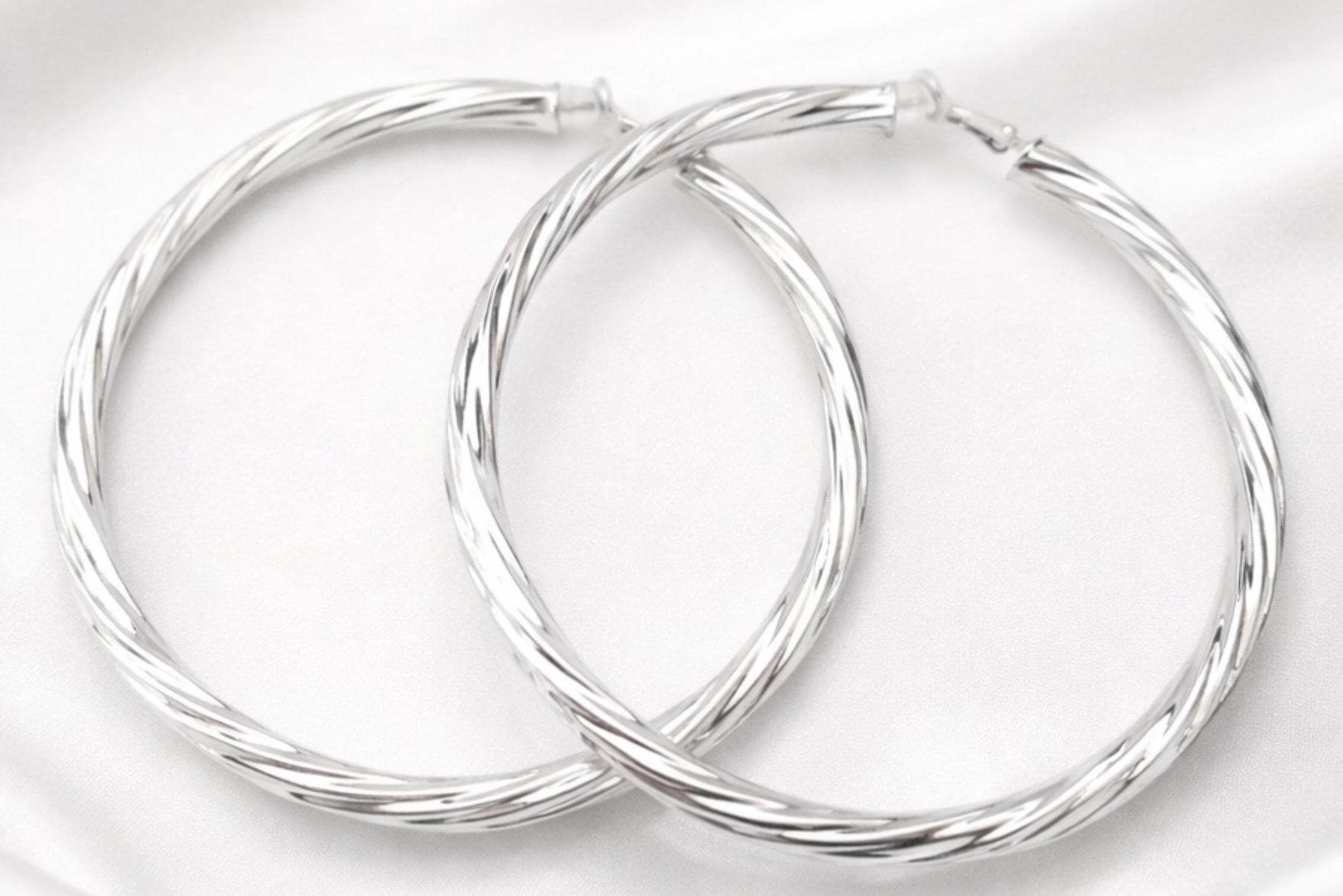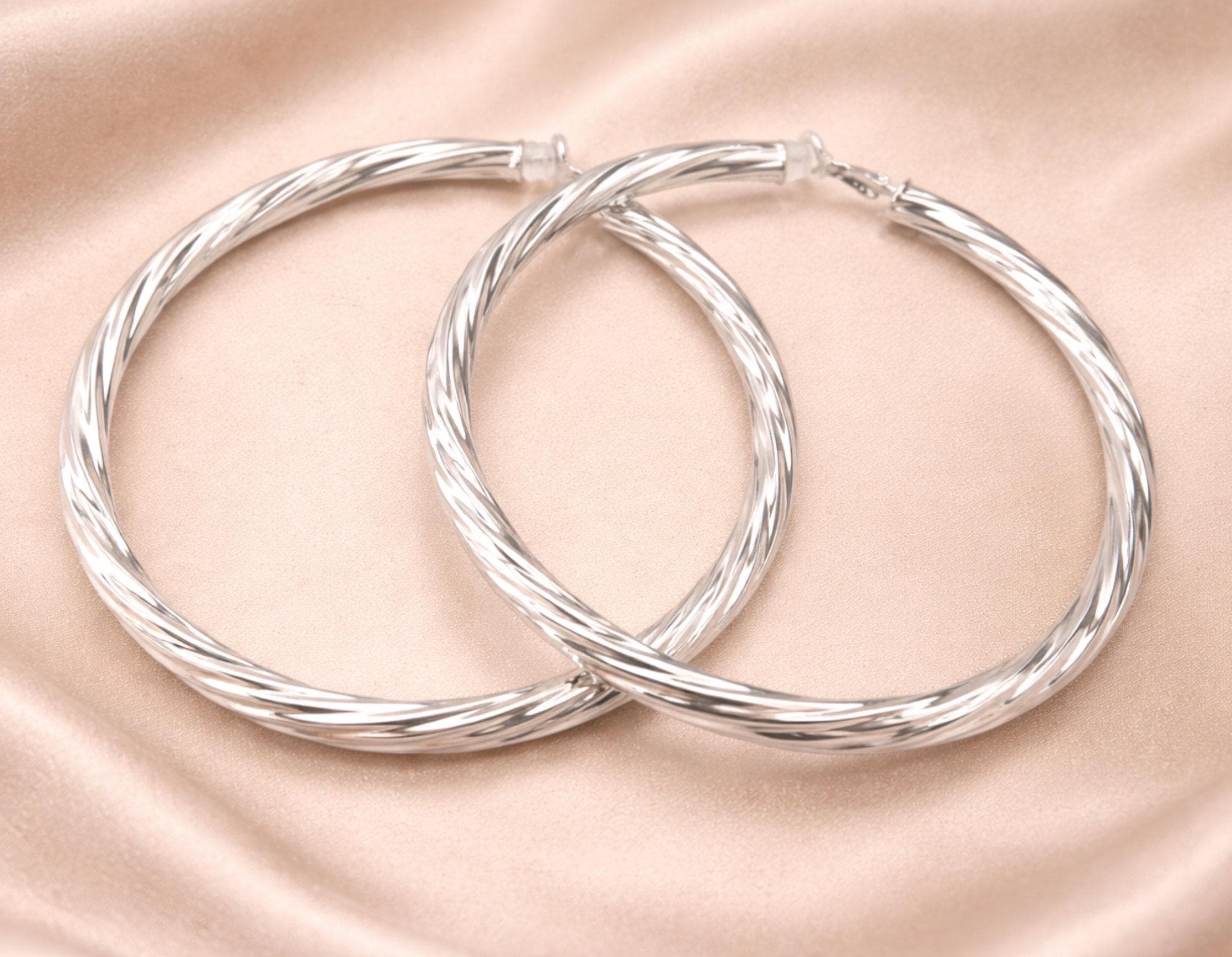These are bold, oversized hoops — much bigger than standard everyday earrings — so please check the size carefully before purchasing to ensure they’re right for you.