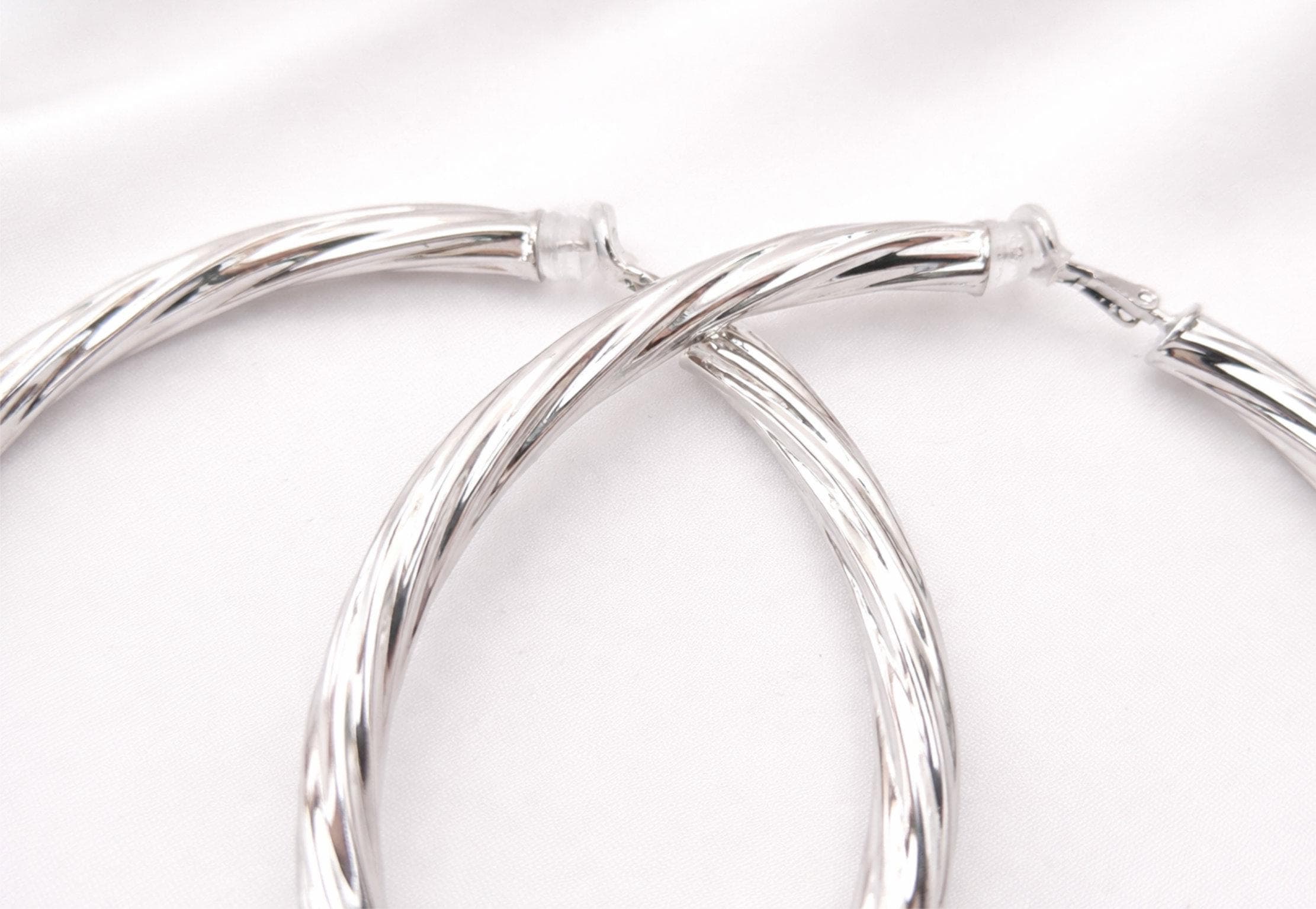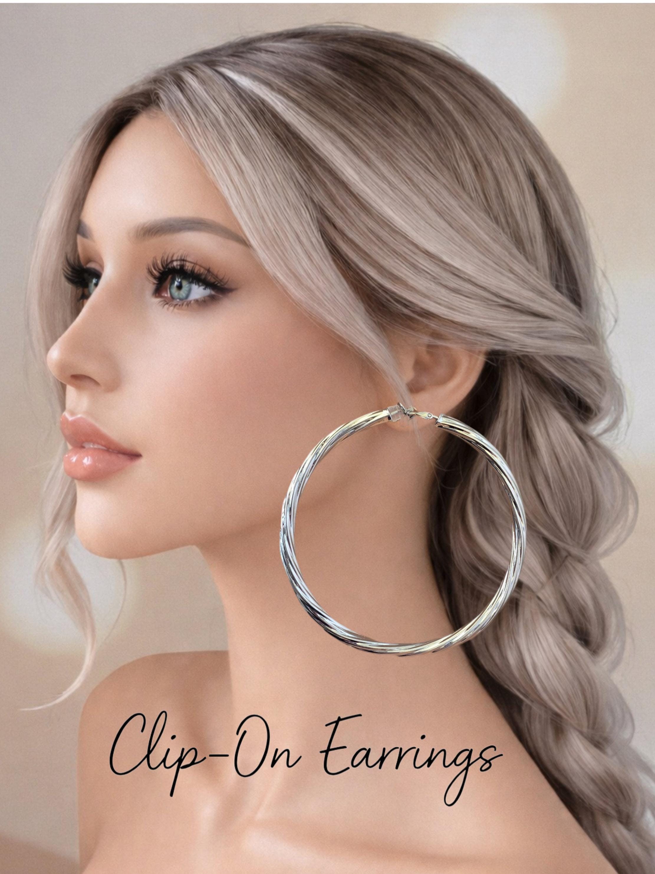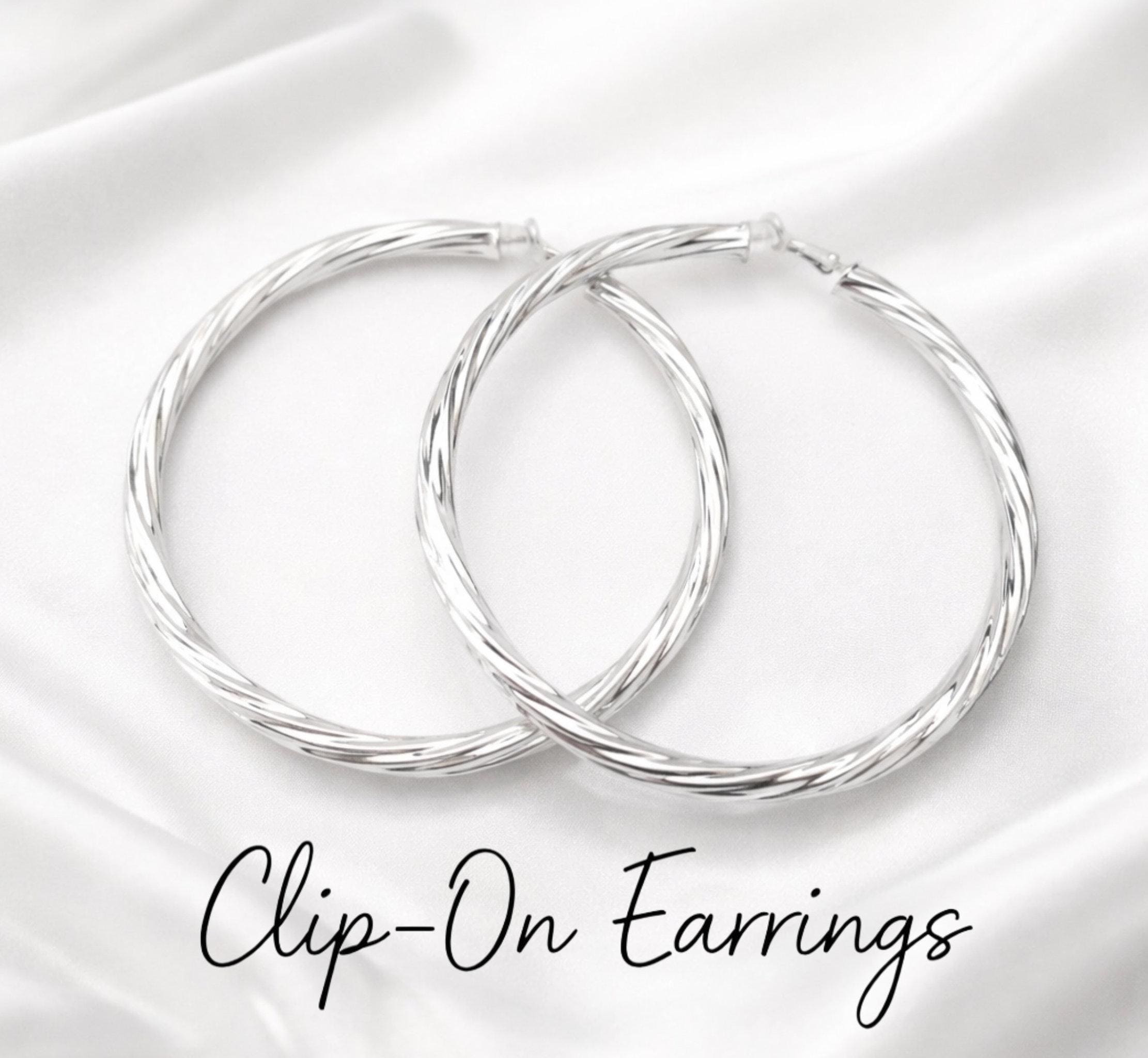 Make a statement with these large silver tone clip-on hoop earrings, designed to stand out.