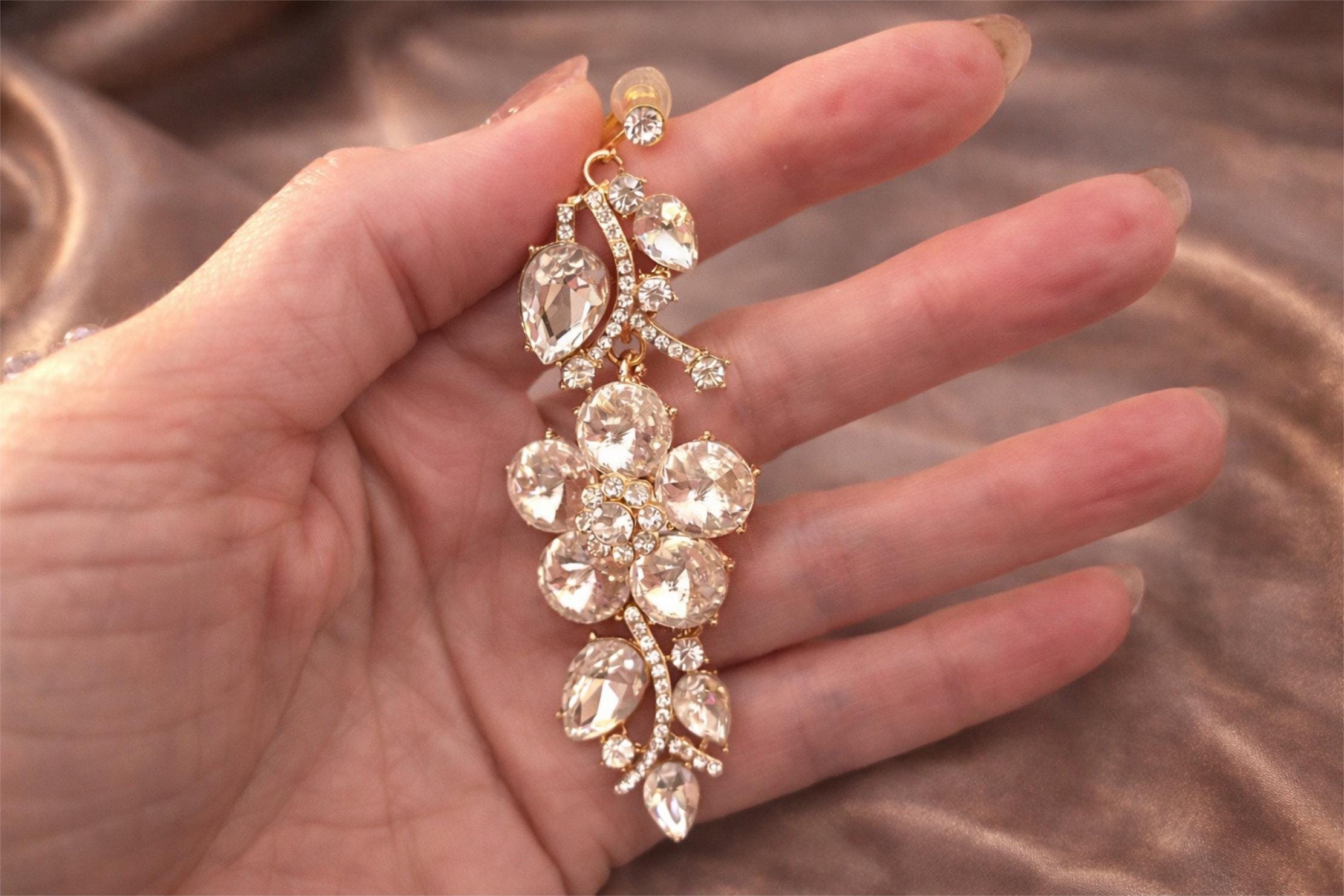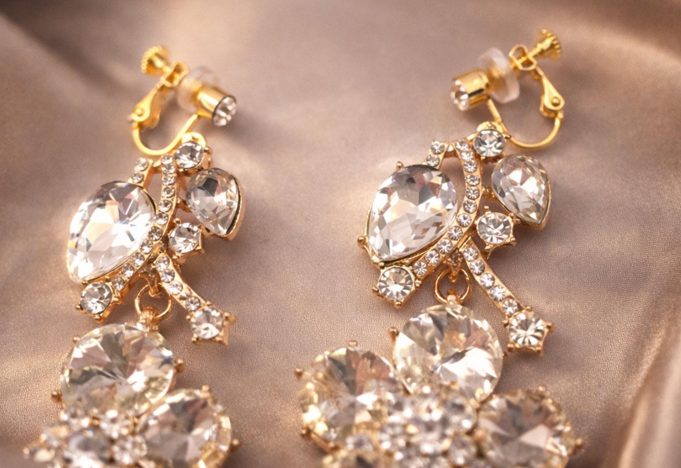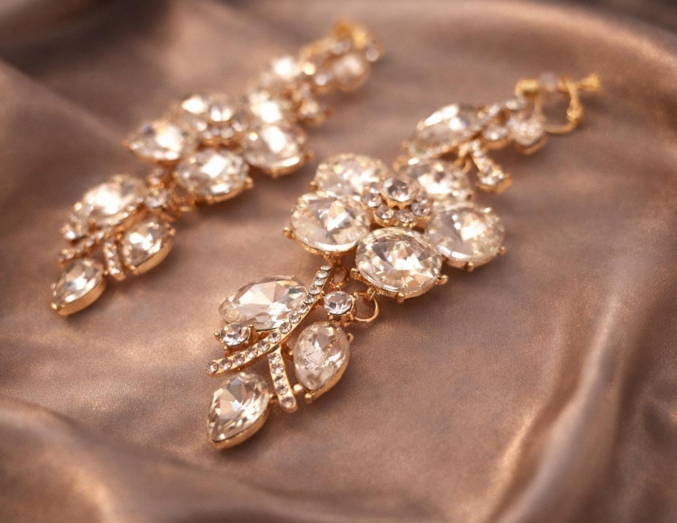 Perfect for weddings, special occasions, or evening wear, these statement earrings offer a luxurious look without the need for pierced ears, thanks to their secure screw design clip-on fastening.