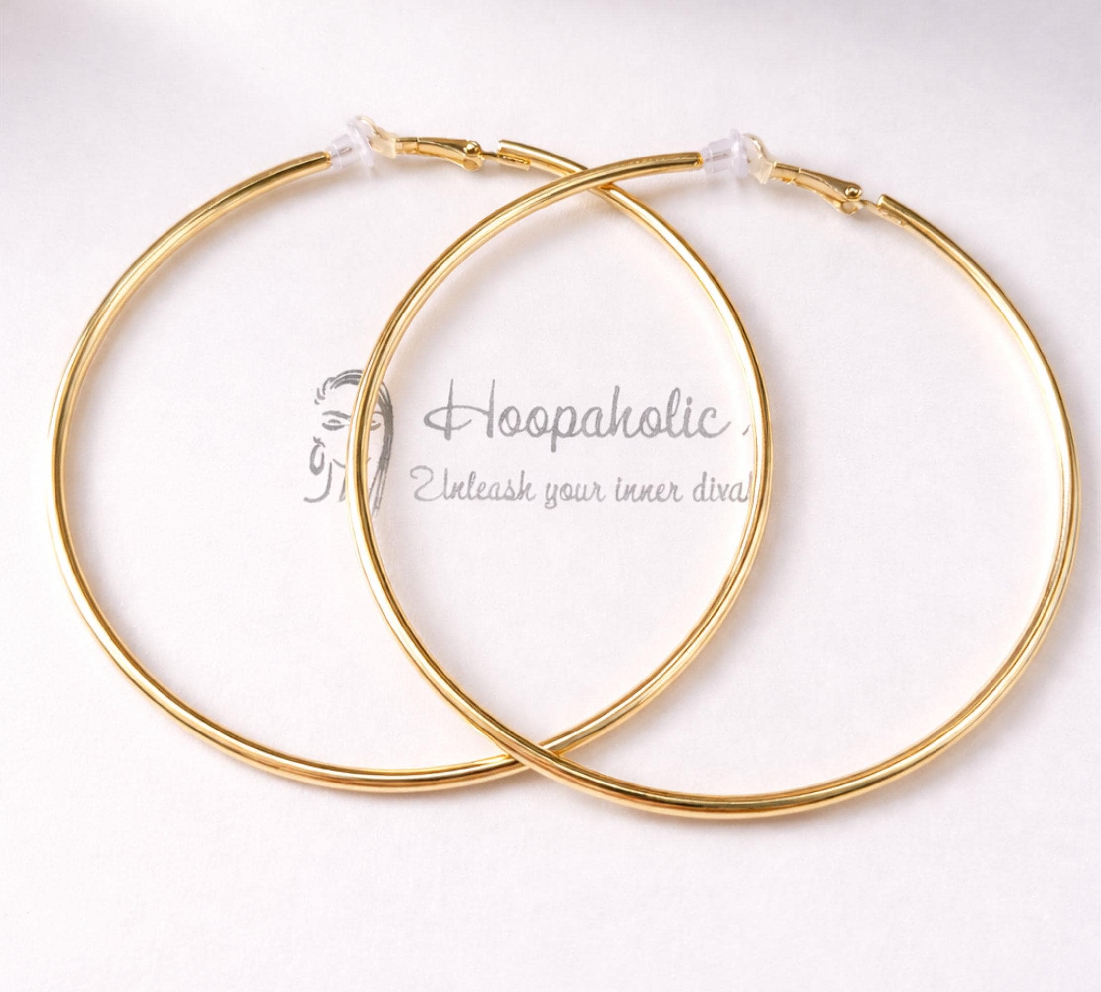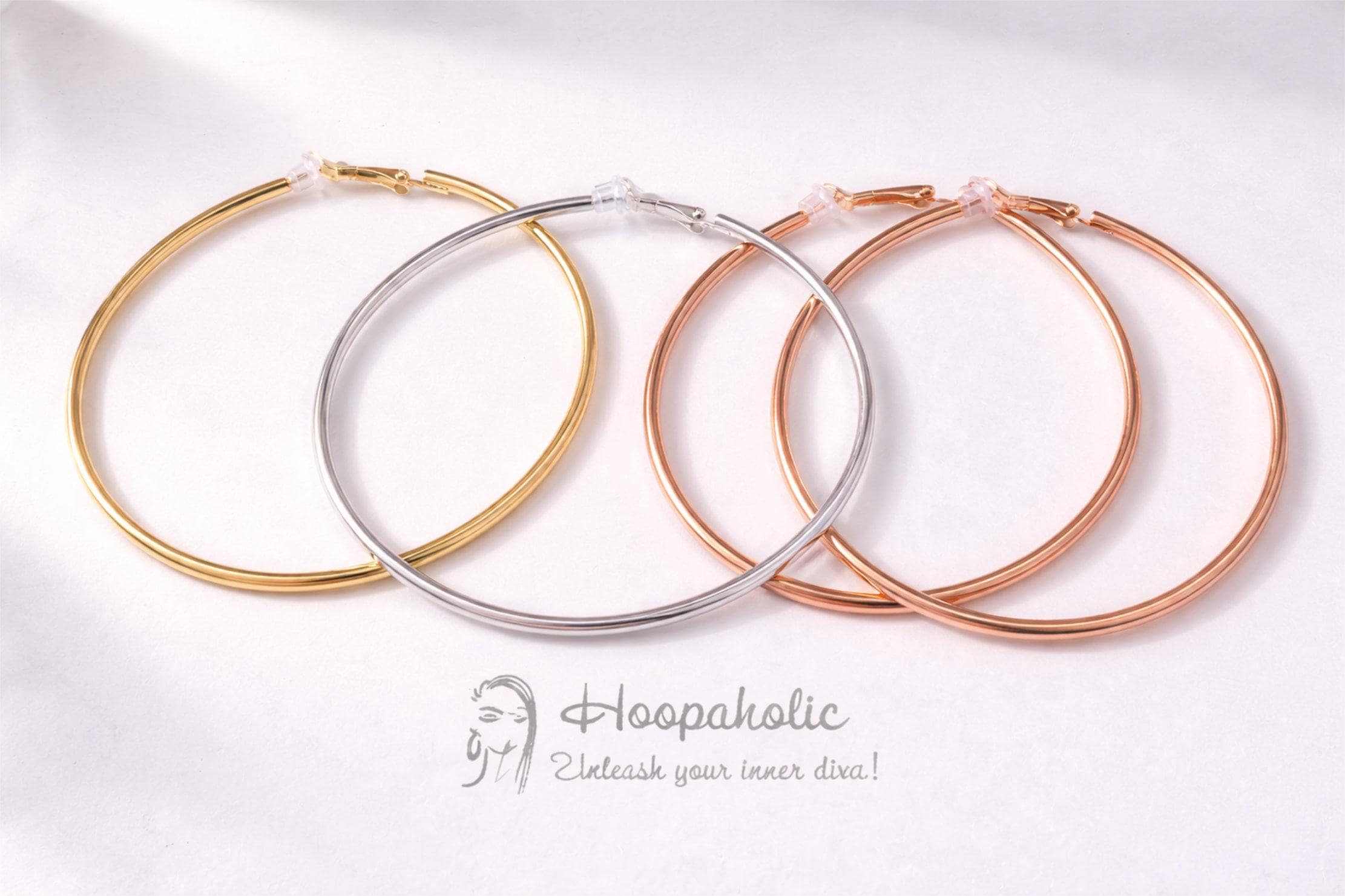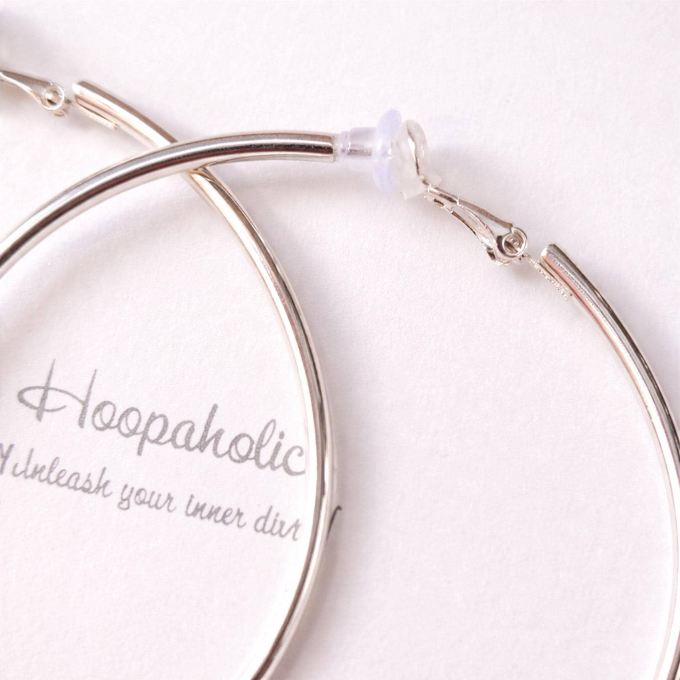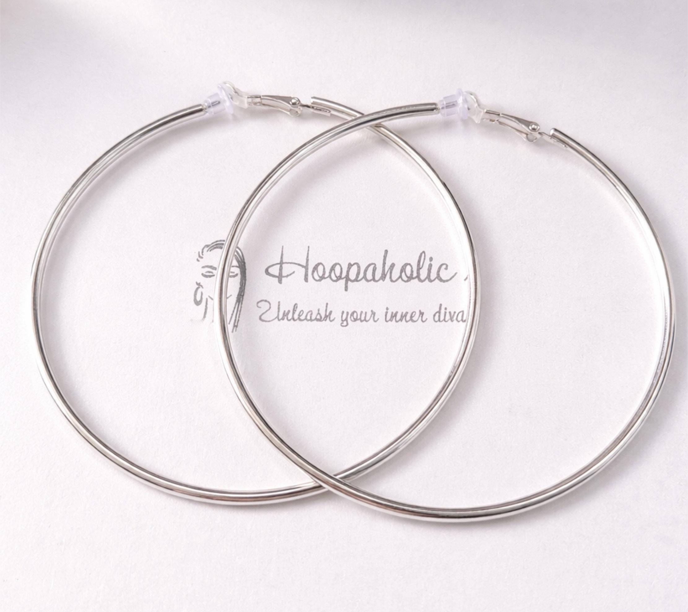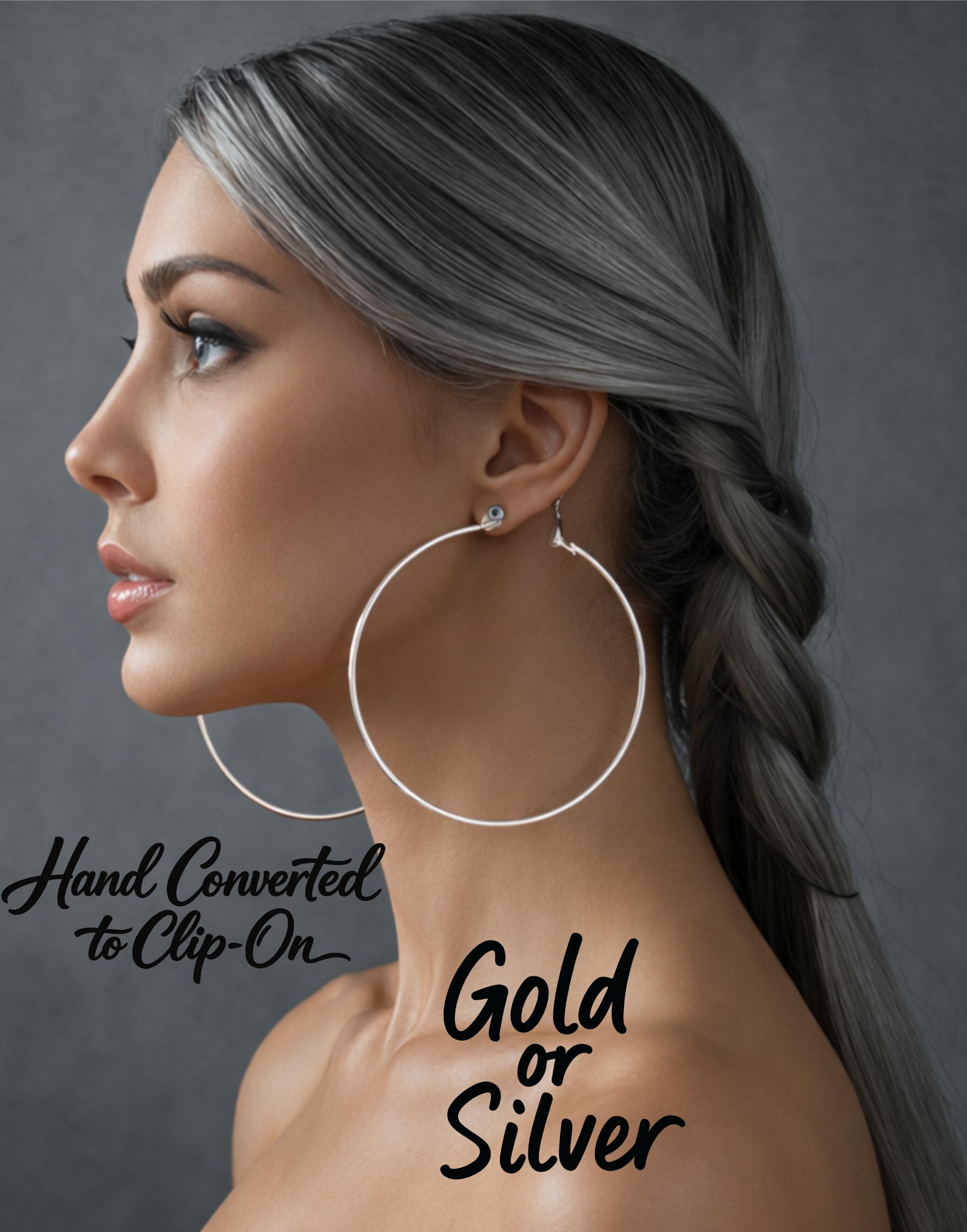 These large clip-on hoop earrings are a timeless statement piece, available in gold, silver, and rose gold finishes to suit every look.