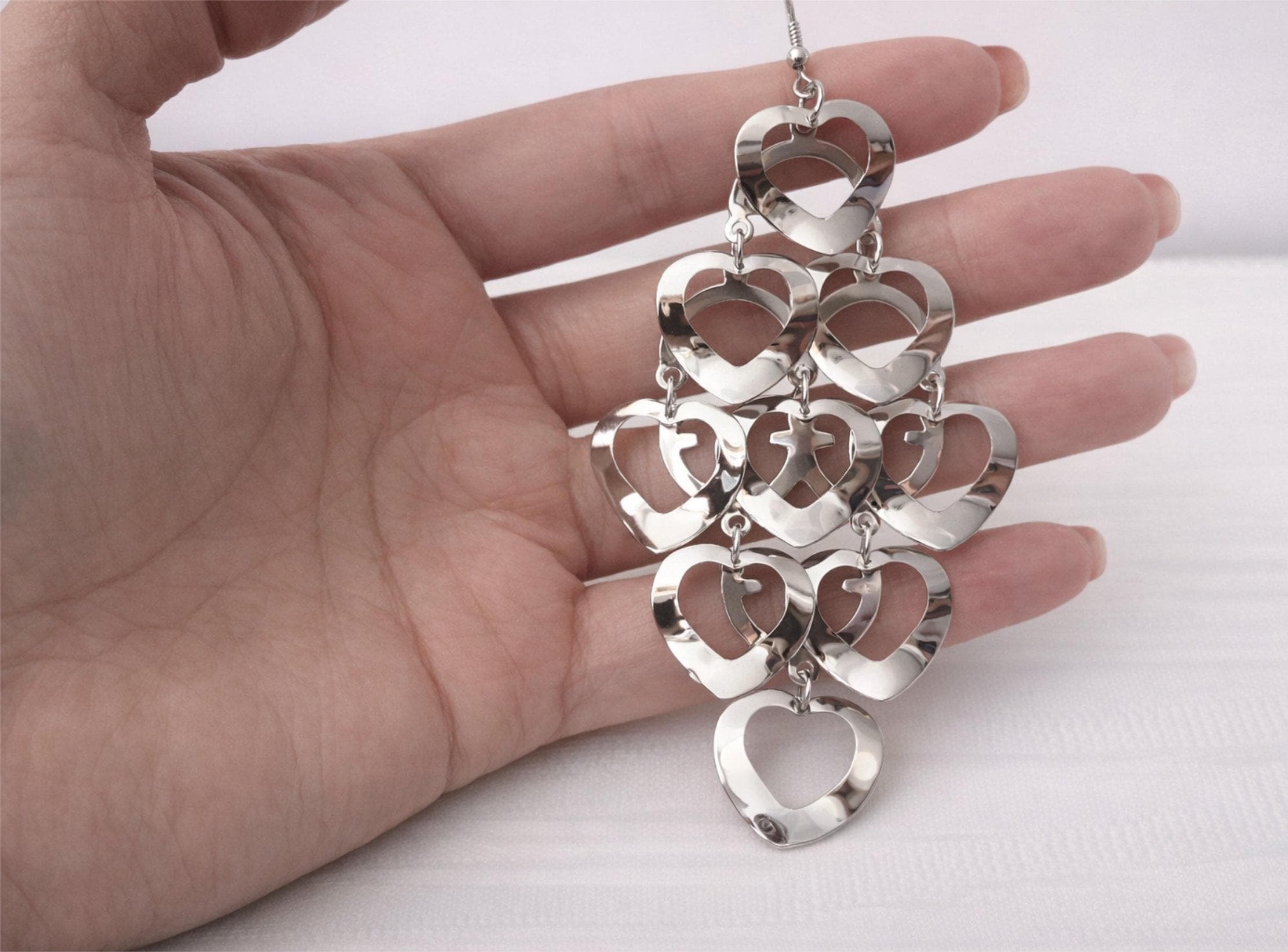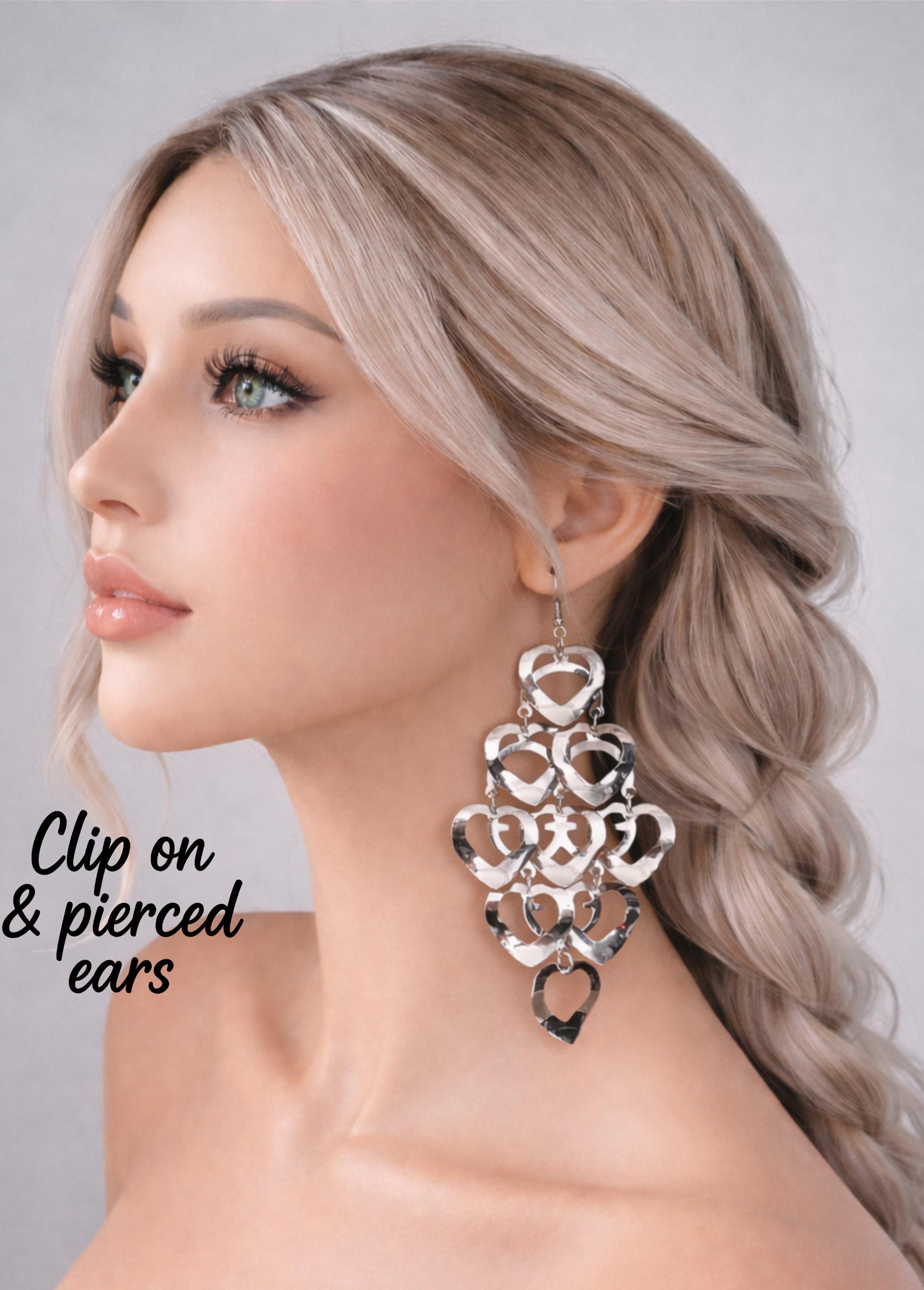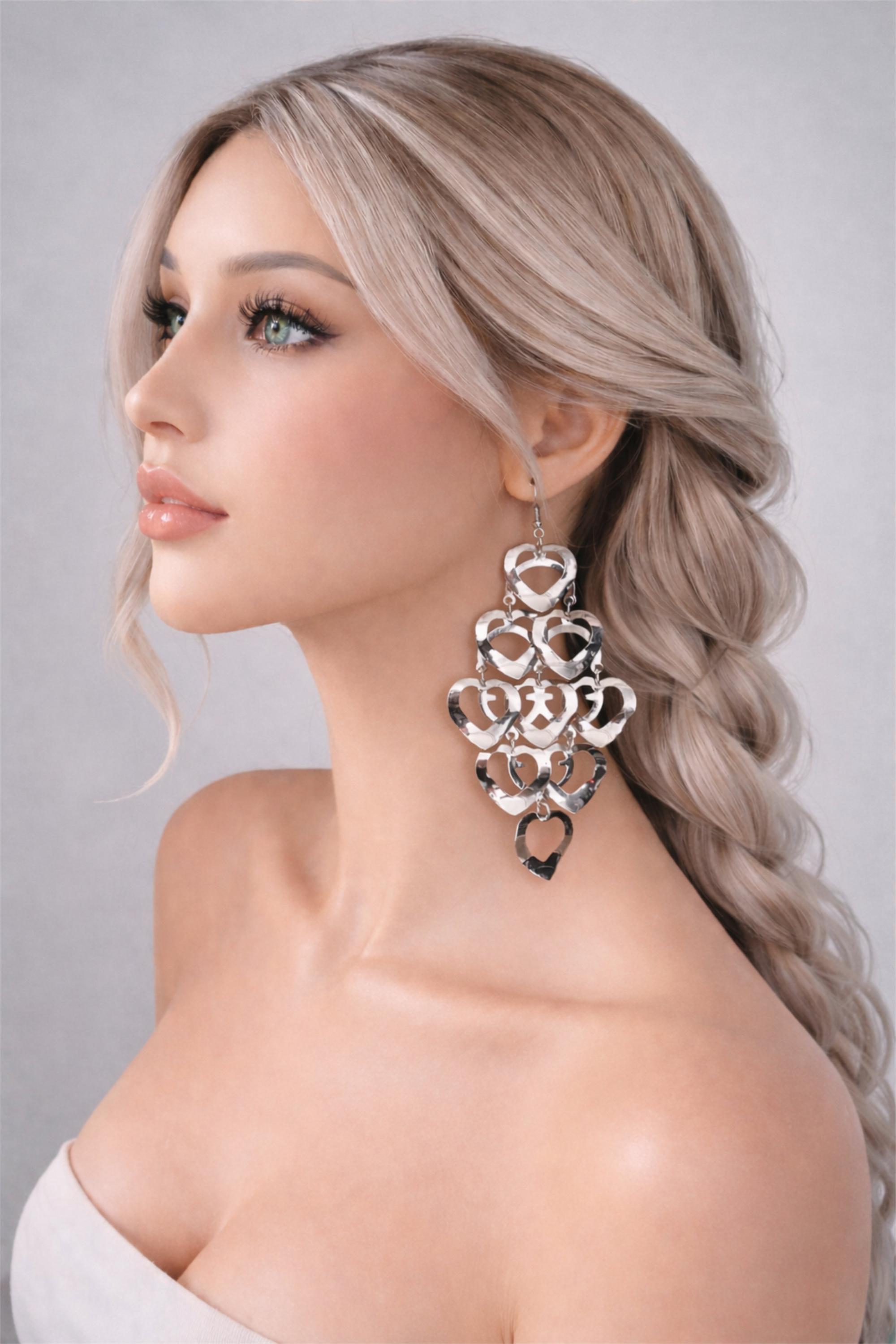 Make a bold yet romantic statement with these stunning cascading heart earrings.